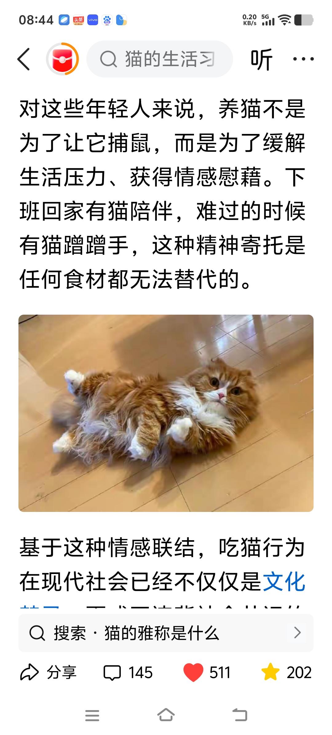 刚刚看到头条的一篇文章,让我心生感慨。 文章说,目前城镇犬猫总量已达1.26亿只。其中90后00后宠物主占比超过69%,单只猫年均消费高达2085元。 2千多块钱也普通年轻人是半个月的工资,记得有一次在医院遇到一个女孩,自己发烧了嗓子疼的说不出话,只是买一点药吃,不舍得花钱。她自己说,是自己的小狗病了,在宠物医院那里治了三天,花了3千多块钱,她连上火带折腾自己病倒了,可是手里没钱了,剩下1千多块钱,还要吃饭交租交话费,不够开销了。像女孩这种状态大有人在。 2025城镇猫消费市场规模,1520亿元。 感觉中国人真的富起来了,以上数字仅仅只是城镇,还有广大农村呢!实际市场规模翻一番都不止。这还是养猫,养其他宠物的不算。仔细想一想,这也不是用来人类为了生存的衣食住行费用,纯粹是消闲的一小部分消费。令人感叹不已。 再说,据文章分析,年轻人养宠物猫是为了缓解生活压力获得情感慰藉,下班回家有猫陪伴,难过时有猫蹭蹭手,这种情感寄托是任何食材都无法替代的。 以前还看到媒体有专门展示“吸猫”,年轻女孩疯狂吸猫身体。看了视频,我就想咳嗽。 想一想,现在的年轻人表面风风光光,实际上下班回家关上门是非常可怜的一群体。 有一些东西真的看不懂,毕竟是现实发生的,有句话说:存在即合理。想起了九斤老太太,我们用什么眼光看年轻人、看现在发生的一些事情,现在的年轻人,也许就会用同样的眼光看我们,现在发生的事情,未必和我们没有关系,也许我们是始作俑者之一。 唉!变化太快了,真的跟不上节奏了。只是我不会养猫也不会养狗,嫌麻烦、嫌狗猫屎尿,嫌它们身上的怪味,嫌他们扰邻,医生说我皮毛过敏,排解压力、放松心情的办法太多了,各有各的万全策。