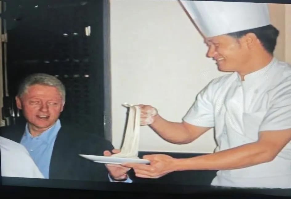 从公布的爱泼斯坦案件的照片看,克林顿和爱泼斯坦在同一餐桌上用餐,显得非常自由放松,就像平常聚餐一样,旁边坐了一位亚裔面孔,非常开心的在看表演,厨师也是亚裔面孔,此次聚餐应该是专门为迎接他的。 这位亚裔面孔,戴着一副金丝眼镜,西装革履,打着领带,很正式,手上拿着雪茄,甚是享受,这一次他们没有吃肉,而是吃素,而且是亚裔面孔的厨师在现场做拉面。 现场制作,现场煮,现场吃,非常奢华,看厨师的打扮,应该也是顶级的,整个过程看起非常专业,制作面的动作很娴熟。 做好后,厨师在一个一个客人进行分吃,没有拌佐料,应该是西方人吃不惯辣椒之类的,而是真正的素面。