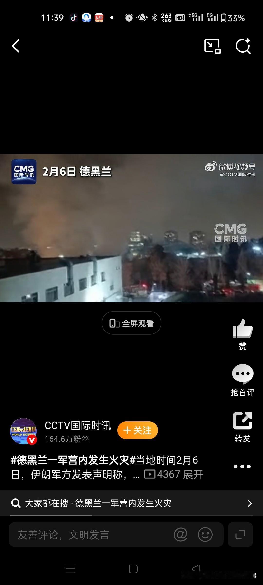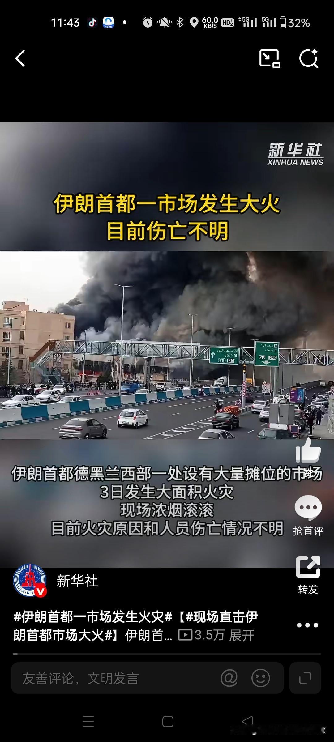 敏感时期伊朗军营起火冒烟德黑兰近期火灾频发。 伊朗德黑兰一军营突发火灾,军方称是电气故障所致 当地时间2月6日,伊朗军方发布声明,当天伊朗首都德黑兰一军营内的木工车间燃起大火。军方表示火势已得到控制,暂无人员伤亡。 当地时间2月6日,伊朗首都德黑兰一处军营的木工车间突发火情,军方声明指出,事故由电气故障引发,火势已完全受控,且无人员伤亡。不过,火灾地点处于敏感军事区域,这引发了部分舆论对安全问题的猜测。@CCTV国际...2122CCTV国际时讯 一、火灾核心事实 时间与地点:火灾于2026年2月6日晚间(当地时间约21:30)发生,地点在德黑兰东部哈什马蒂耶地区(Heshmatieh)的军事设施内,具体是武装部队总参谋部综合大楼附属的木工车间。@一碗荤豆花323 官方通报:伊朗军方声明显示,火灾由电气短路引发,车间约300平方米区域受损,消防部门迅速响应并扑灭了火势。明确排除人员伤亡情况,并强调事故未波及周边关键军事设施。@西安新闻网123 现场情况:目击者称听到爆炸声并看到浓烟,消防部门解释这是燃烧过程中产生的声响,与外部袭击无关。@身为里中横2425干弟Nick在学英语 二、背景与关联事件 德黑兰近期火灾频发:2月3日,德黑兰西部贾纳特市场(Janat Abad)发生大面积火灾,占地2000平方米的摊位被烧毁,原因尚未公布。@新华社1112 2025年3月6日,德黑兰东北部军事设施火灾造成1名军人死亡、10名消防员受伤,调查认定是建筑密闭导致烟雾积聚爆炸。 敏感地区事故引发猜测:部分网民联想到以色列与伊朗的冲突历史(如2025年6月以色列空袭伊朗国防部事件),猜测此次火灾可能是“蓄意破坏”。@沙姆雄狮E...213 认证账号提及“摩萨德行动”“制造恐慌”等未经证实的说法,但伊朗官方及主流媒体均未支持此类观点。@何天恩6新华社环球时报参考消息何天恩沙姆雄狮EL新华社CCTV国际时讯勤奋de班长 三、官方态度与后续行动 伊朗国防部表示将加强军事设施安全检查,并修订消防管理规范(参考2025年3月事故后的整改措施)。军方声明重申火灾为独立事故,呼吁公众勿信谣传。12223 四、风险提示 部分网络推测将火灾与地缘政治冲突关联,但并无实证支持;应以伊朗军方声明为准,避免过度解读。12123