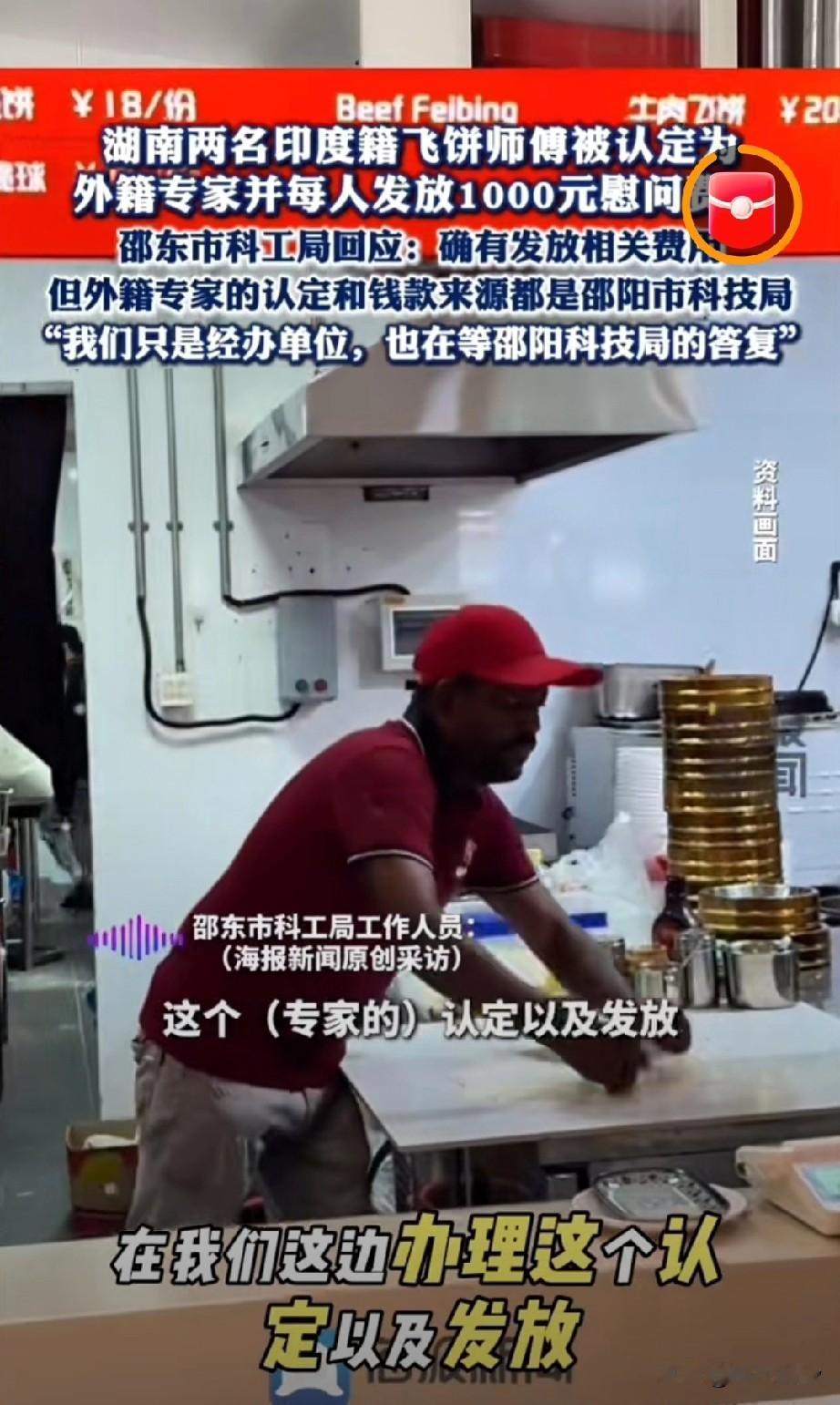 2026年2月6日湖南邵阳两名印度籍飞饼师傅被认定为外籍专家,每人获发1000元慰问费,引发广泛争议。 能做几个飞饼怎么在中国就成了专家?很多网友表示,在我们这个美食大国随便一个特色美食都可以征服一众老外,没有你吃不到的,只有你想不到的,如果按照这个标准,我们几乎任一个餐饮店主都能成为专家。 据了解,邵东市科工局称认定主体和资金来源均为邵阳市科技局,该局仅为经办单位,按湖南省规定,外籍专家通常需学士以上学位及5年以上相关经历,飞饼师傅背景与标准有差距。 说实话,我也没有去过印度,更没有吃过印度飞饼,不知道好不好吃?有没有我们的煎饼果子好吃?是不是印度飞饼确实有科技含量或者是有特别制作手法 但是不管怎么说,我们中国人一定要自信,在吸引外籍人才当年或者引进外来技术时候一定要有高标准,否则会被老外轻视我们,让他们觉得拥有一个小儿科的技能都可以在中国成为专家而受到厚爱! 印度籍飞饼师傅被认定为专家并获得1000元奖励,这事你怎么看?