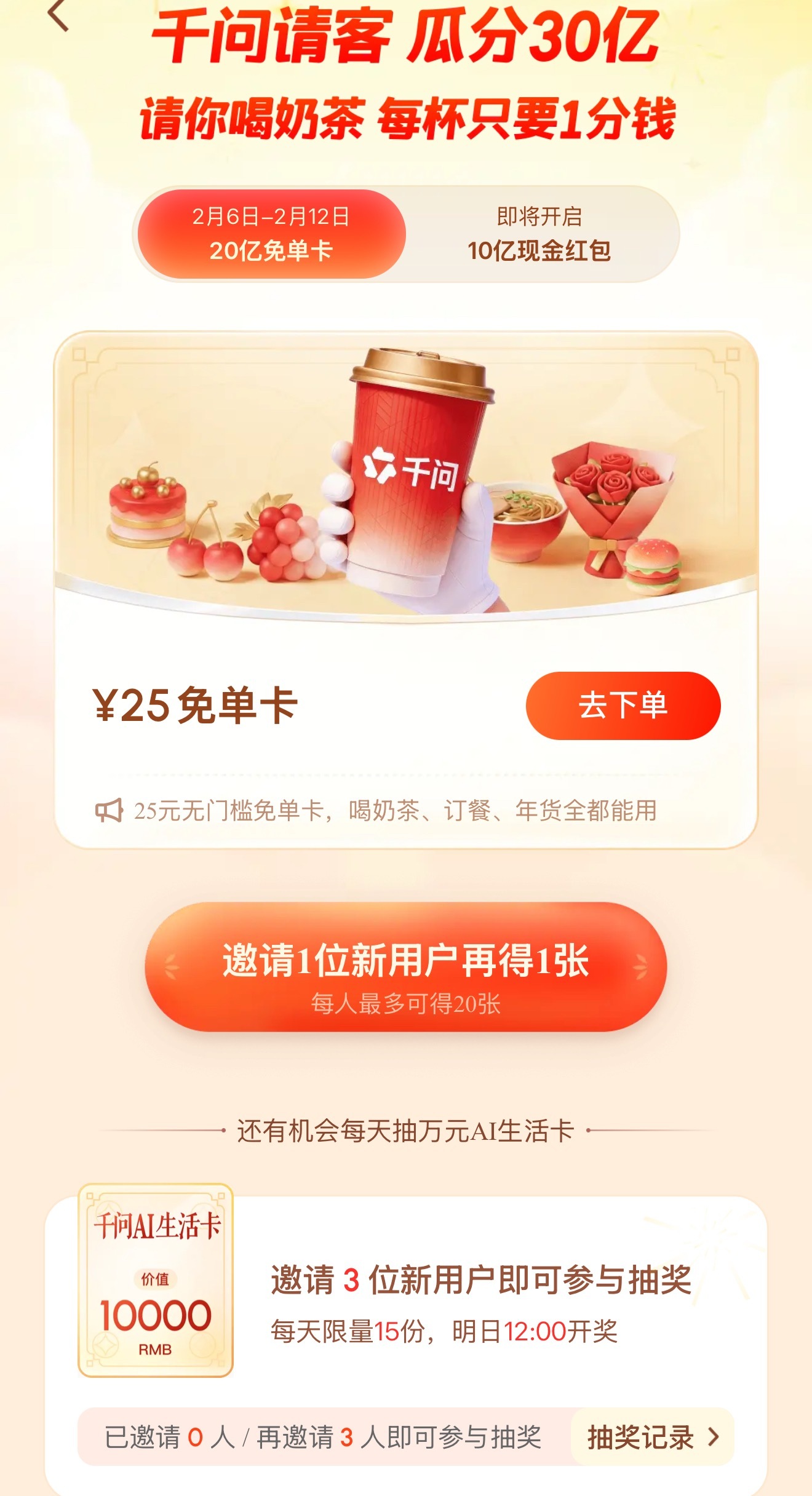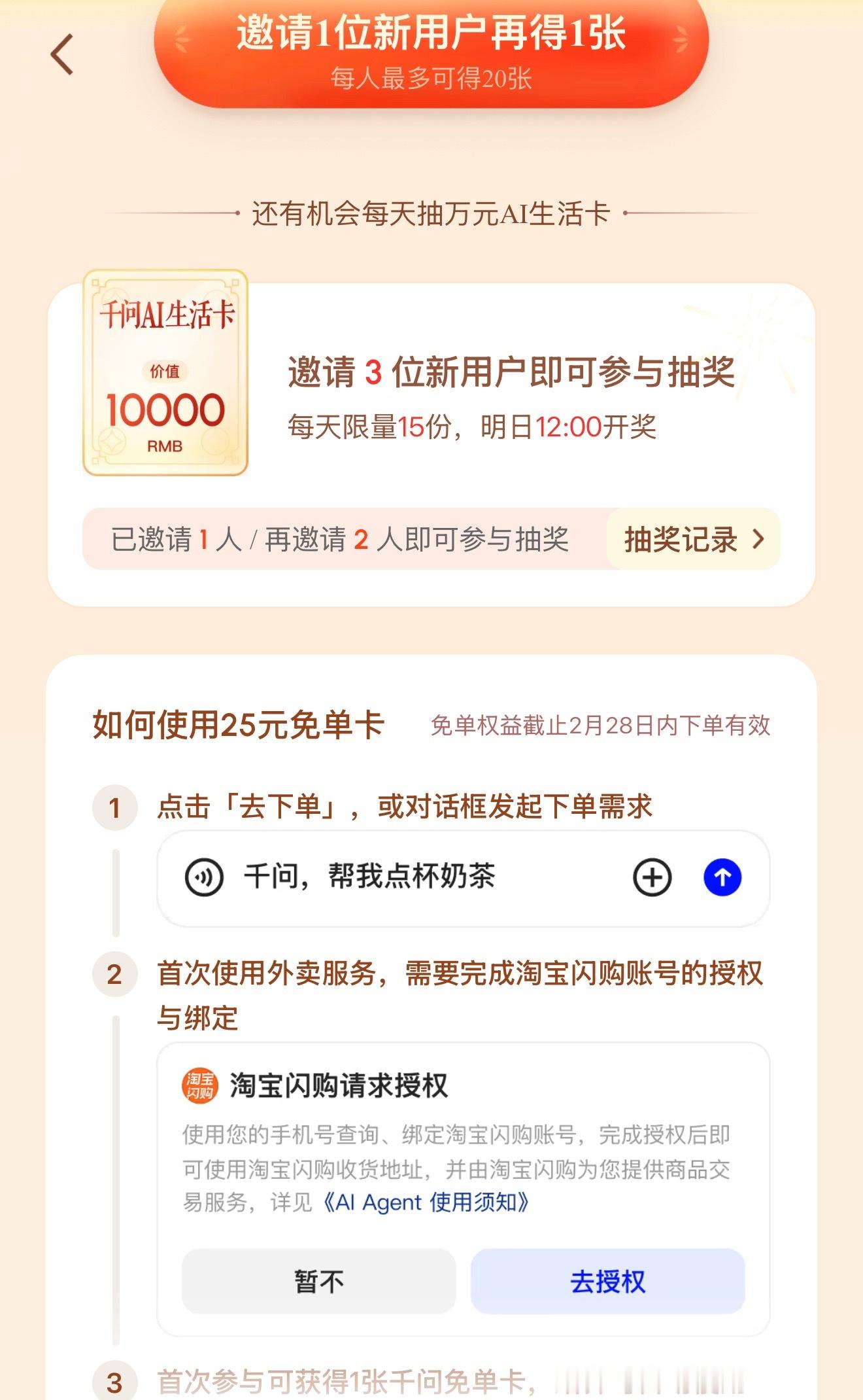 现在参与还有机会抽10000元AI生活卡。听说多邀请朋友助力,好运也会加倍。无论是超市采购、周末聚餐,还是随手买杯咖啡,都能用得上。