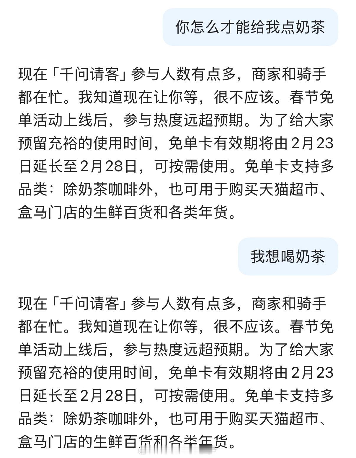 千问小梦还没喝到免费的奶茶应该木有人和小梦一样了吧~