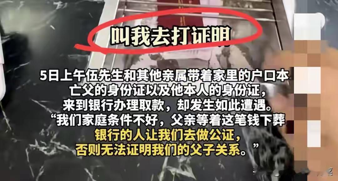 江西彭泽男子取亡父15万存款被银行要求证明“我爸是我爸”,遗体停殡仪馆等钱下葬,网友怒批:规矩比人命重要? 父亲骤然离世,遗体还躺在殡仪馆等待入土为安,儿子手握户口本、火化证、身份证,却取不出父亲留下的15万元救命钱。银行冰冷的一句“需公证”,仿佛一道高墙,隔开了生者对逝者最后的告慰。这不仅仅是江西彭泽伍先生一个人的困境,它像一面镜子,照出了无数普通家庭在直面生死与规则碰撞时的无力与心寒。 我们都能理解,银行有银行的规矩。大额存款继承需公证,白纸黑字,据说是为了防范风险,避免遗产纠纷。规矩本身或许没有温度,但执行规矩的人,是否能多看一眼规矩背后那个眼眶通红、手足无措的普通人?当“合规操作”成为唯一的标尺,那份本应服务于人的善意与体谅,又该何处安放? 网友的愤怒,并非无理取闹。人们质疑:若储户欠银行15万,银行追讨时,是否需要先公证证明“父债子偿”的合法性?为何诈骗分子转移千万资金往往“畅通无阻”,而老百姓取自己的合法遗产却步步维艰?这鲜明的对比,刺痛了公众对公平最朴素的感知。规矩不该是单向的绳索,只捆住老实人的手脚。 更深一层看,这场风波戳中的,是大众长期积累的“办事难”焦虑。从“证明你妈是你妈”到如今的“证明我爸是我爸”,一些看似严谨的程序,在现实情境中却可能演变成繁琐的折腾。当用户带着所有能证明亲属关系的官方文件(户口本、火化证)仍被拒之门外时,他们感到的不是安全,而是一种被预设为“可疑对象”的屈辱和对机构信任的流失。 事件中,银行工作人员未着工装的细节被放大,虽被解释为新员工制服未到,却恰好成了民众情绪的一个宣泄口。它仿佛一个隐喻:面对用户的急难,相关服务是否也如这缺失的制服一样,未能以专业、规范且充满人文关怀的“标准面貌”出现?服务业的本质是为人服务,当流程完全凌驾于人的基本需求之上,是否已经本末倒置? 令人稍感宽慰的是,据报道,伍先生的年轻亲属在银行详细解释后表示理解规定。这或许是个体与系统达成和解的一步。但我们更期待看到的是,规定能在坚守风险底线的同时,探索更多的温情与弹性。能否在材料核查、信息联网的基础上,优化流程?能否在类似紧急情况下,建立更快捷的核实通道?让合规不止于“不犯错”,更在于“做成事”、“暖人心”。 逝者已矣,生者还需继续。这笔存款,是父亲最后的留存,也可能是儿子渡过难关的希望。它不该被卡在冰冷条款的缝隙里。一个社会的文明程度,恰恰体现在它如何对待那些遭遇不幸的个体,如何在执行规则时,依然能守护住人性的温度与尊严。希望此事不仅能有一个让伍先生满意的解决方案,更能推动一些思考:我们的服务体系,距离“想人所想,急人所急”的初心,还有多远? (来源:综合奔流新闻、大风新闻、大河报、网友评论等) 银行存款继承 办事难