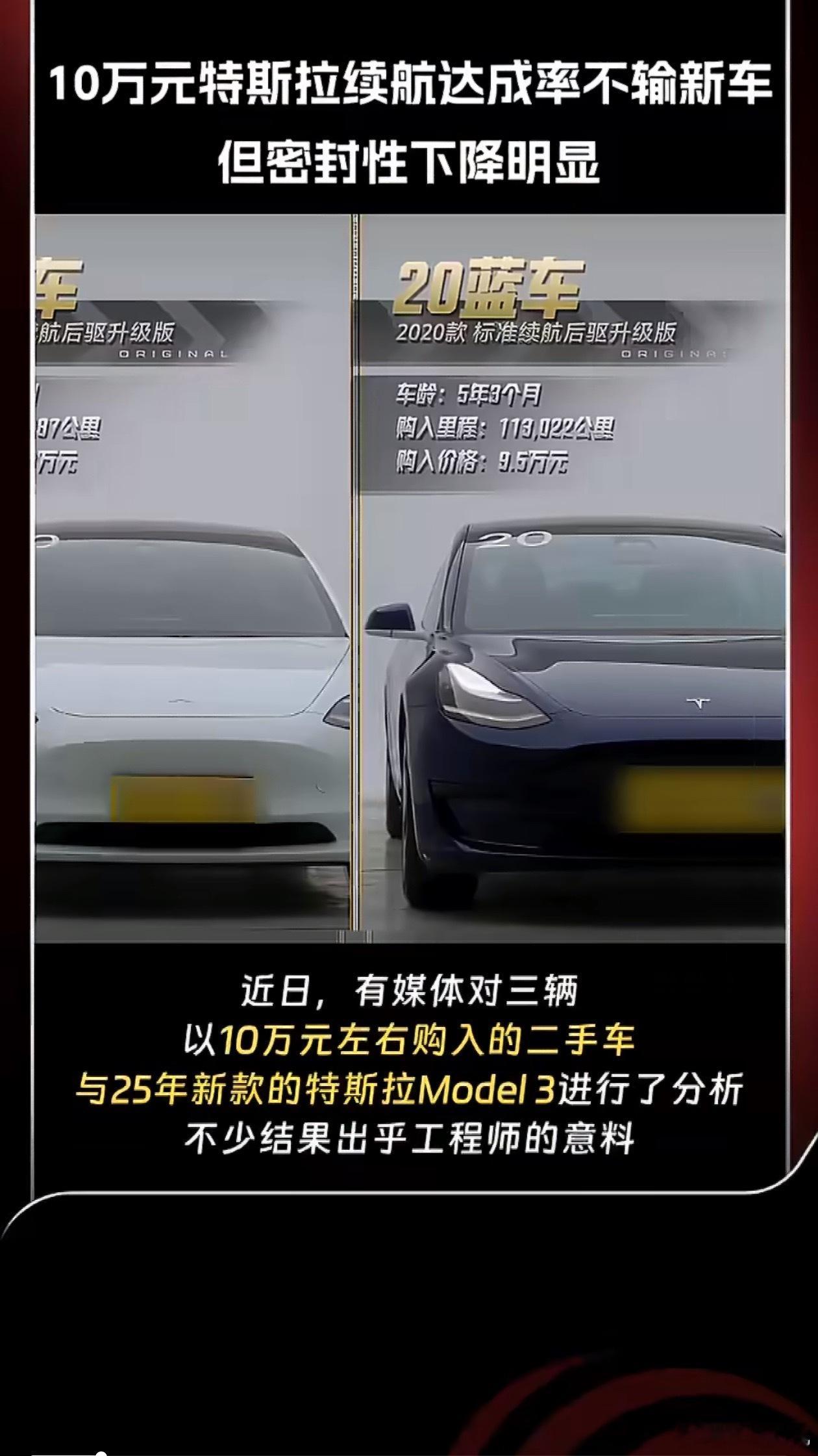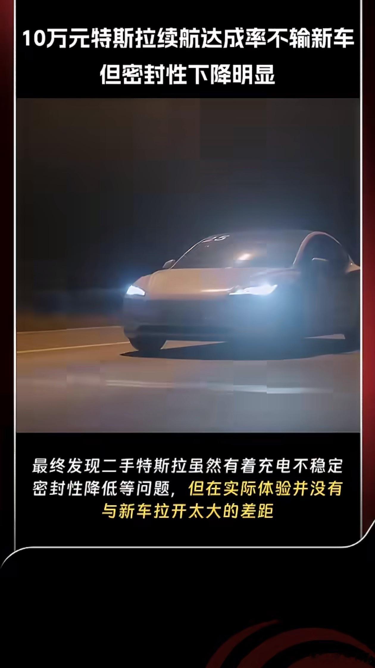 10万元特斯拉续航达成率不输新车10万元的二手特斯拉续航达成率,流畅度都和新车差不多,密封性下降明显,特斯拉确实牛逼