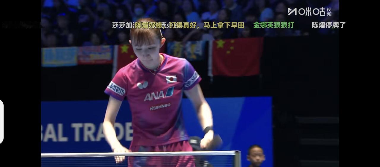 恭喜我们滴女乒[玫瑰][玫瑰]陈熠3:1战胜厉害滴早田希娜,强势晋级八强[微笑]莎莎让一追三战胜韩国金娜英,顺利晋级八强[笑哭]今天女乒抗日抗韩完胜,真是快乐观赛,于老师可以开心吃饭啦[大笑]
