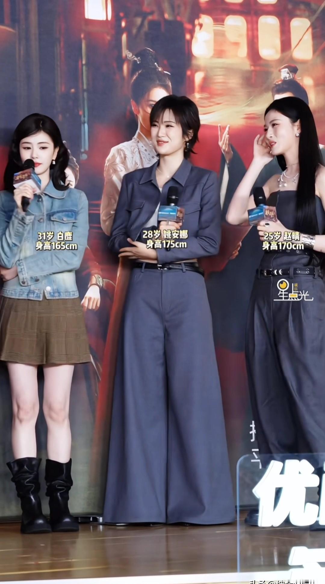 太敢拍了! 姚安娜直接把白鹿“挤”到旁边,上演了一出“女企业家带俩业务经理谈合作”。 别惊讶,这真不是按咖位站的。 《白月梵星》发布会,172cm的姚安娜稳站C位,把官方女主、165cm的白鹿衬成了“镶边”的。 旁边的赵晴身高也在170cm以上,如果让白鹿站中间,瞬间就一个“凹”字,画面直接崩掉。 这叫舞台视觉潜规则,身高,就是天然的C位通行证。 但真正让网友炸锅的,不是身高,是气场。 你看姚安娜,没有一丝讨好镜头的局促,那种松弛感,就像巡视自家产业。 她不笑的时候,整个人的能量是向内收的,眼神里透出的不是“我要红”,而是“我来了”。 这种深入骨髓的笃定,是再多演技也“演”不出来的。 所谓C位,从来不是合同上写死的番位,而是你一出场,别人就心甘情愿为你让出的那条路。