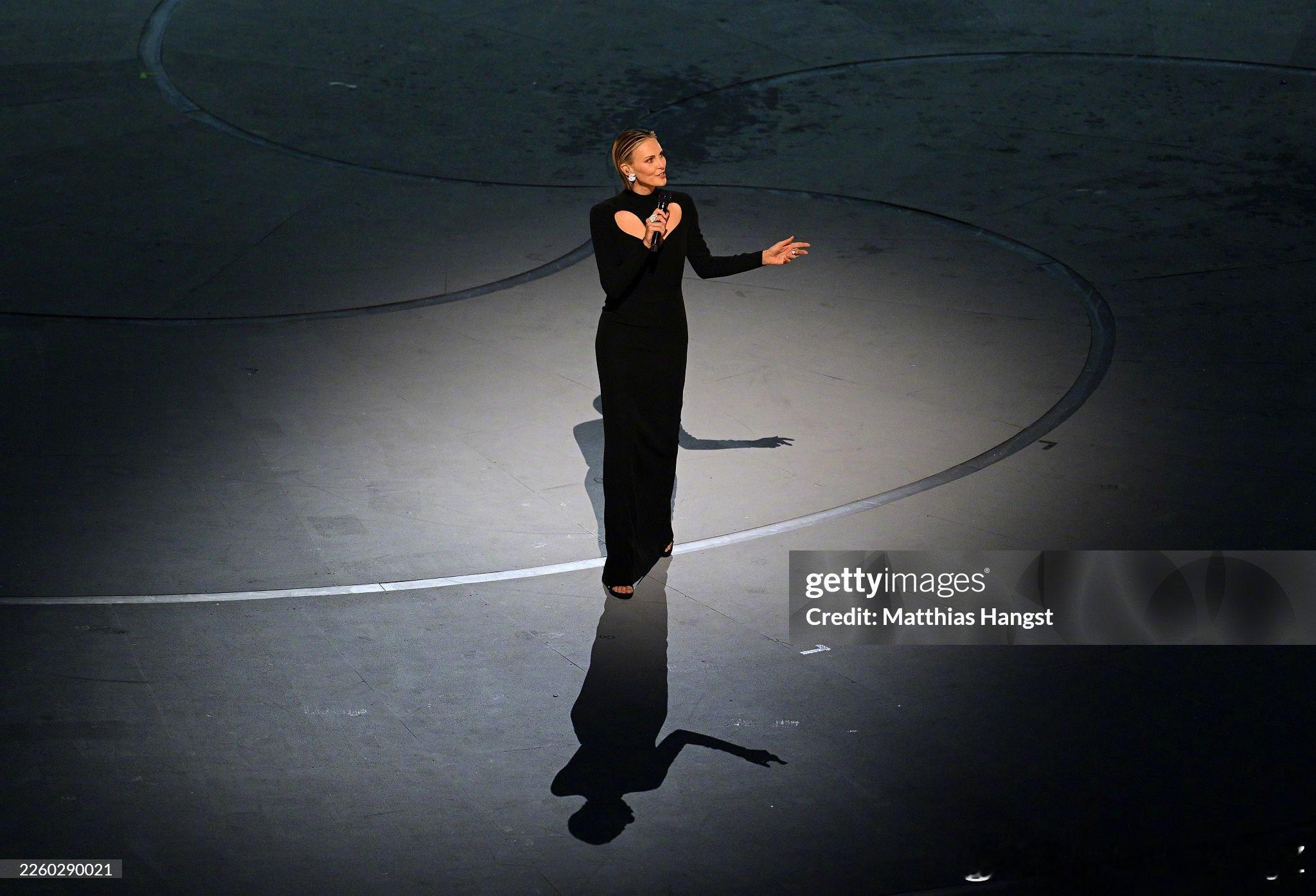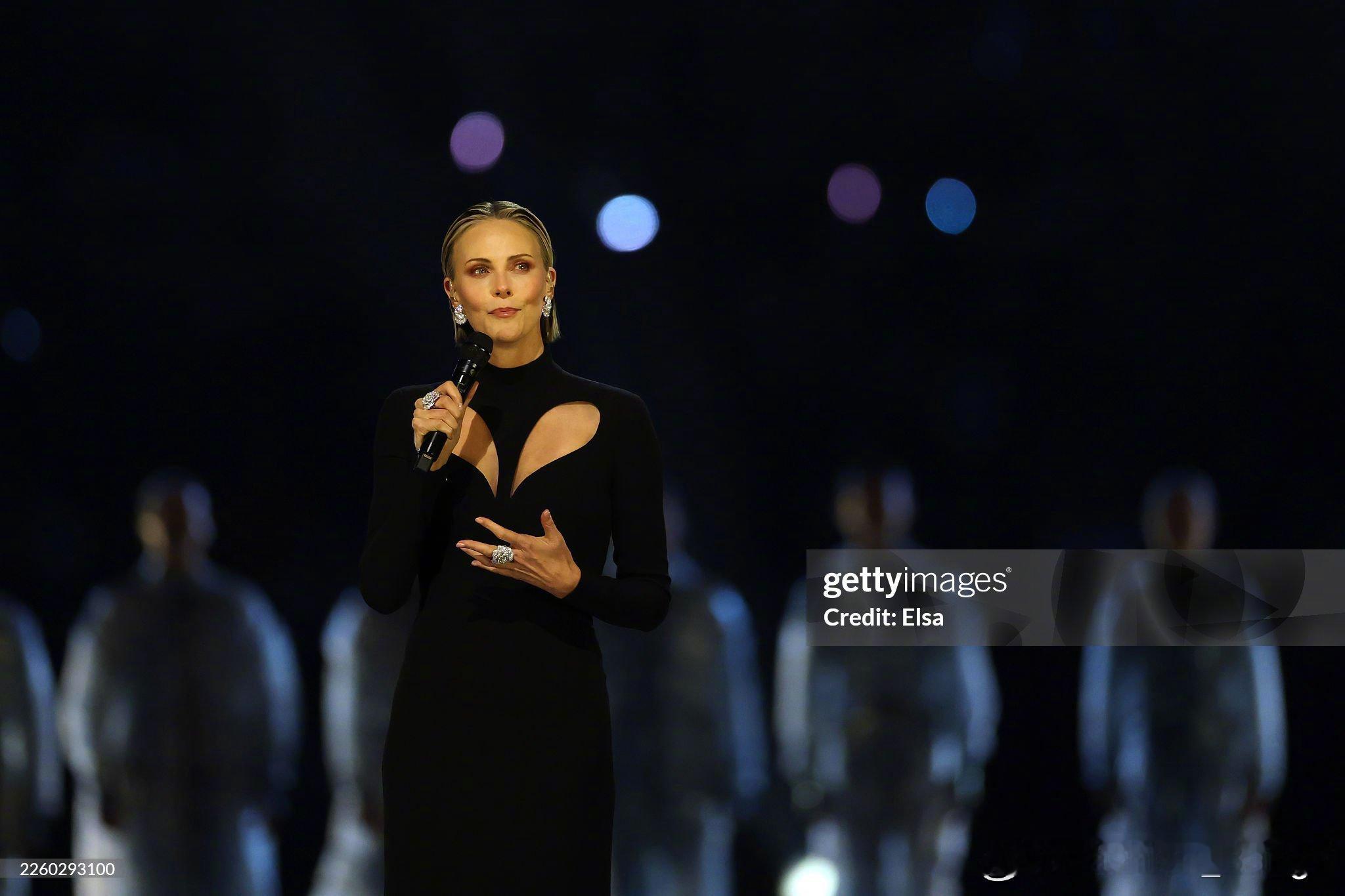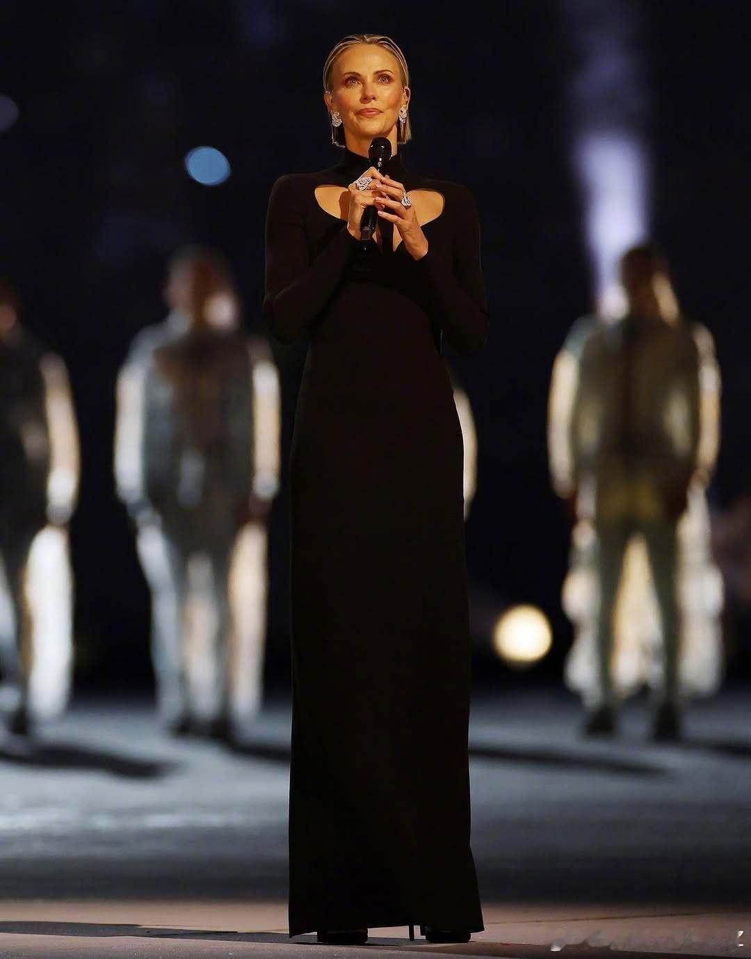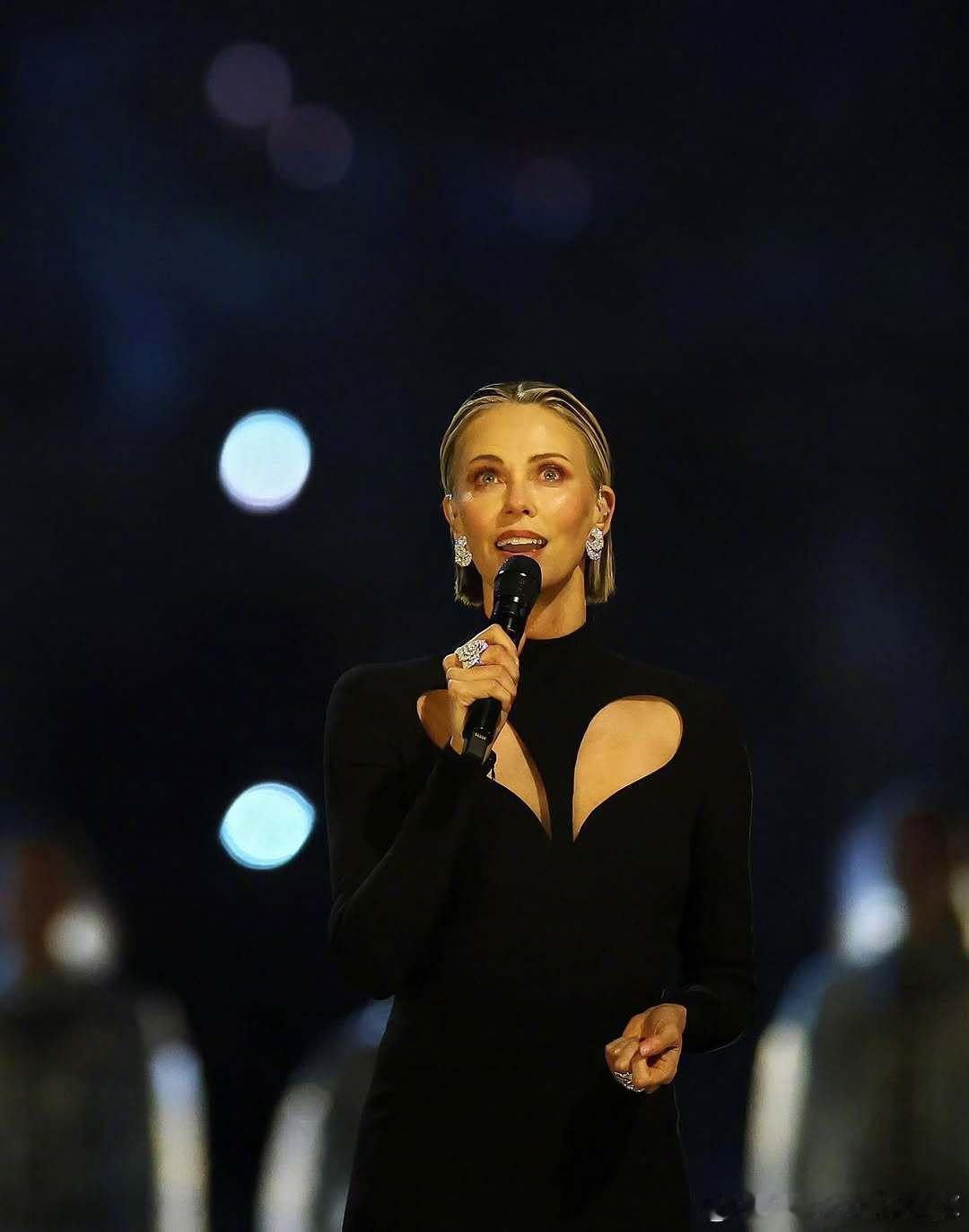 昨晚冬奥会开幕式 ,还邀来了演员 Charlize Theron 登场。她这次是以联合国和平大使身份亮相,并发表演讲。黑色长裙来自 Atelier Versace,端庄优雅、美丽大方!冬奥会时尚图鉴