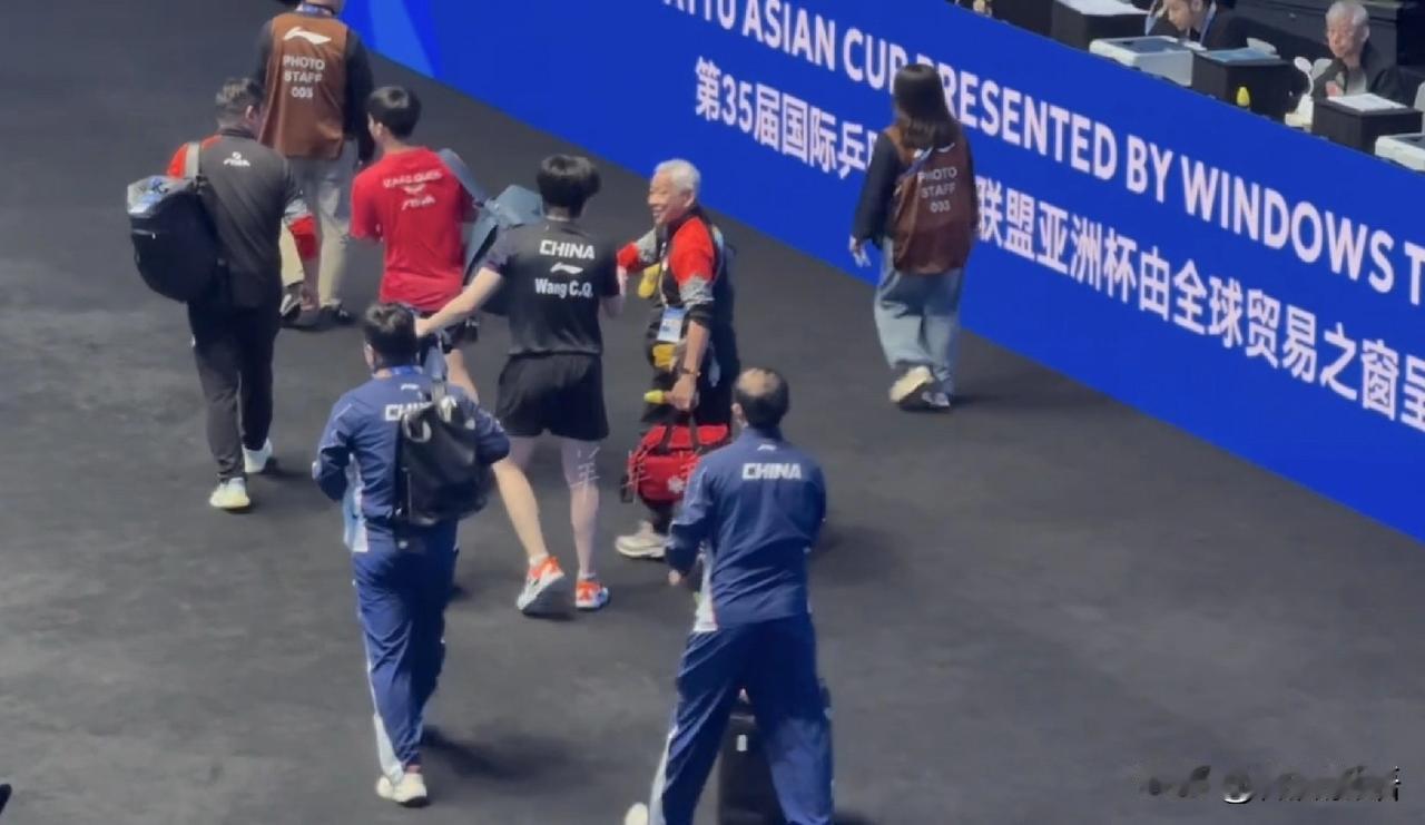王皓也挺有节目啊,哈哈。 刚刚王楚钦赢下比赛后,他在那收拾包,这时观众席有个男生在那喊:“王皓,给我签个名”,然后皓哥看了一圈,眼神锁定一个地方,隔空签名了,皓哥想我是签名了,就是不知道你收到没,哈哈!不过刚刚听那个男生的声音,和莎莎比赛后喊的“马琳,我爱你”是一个声音,喜欢运动员的同时,也喜欢他们的教练。 孙逊和王皓是轮流给王楚钦做场外了,昨天王楚钦采访时就说现在他和孙逊是在一个磨合期,相信孙逊教练的指导技术。下午的男单1/4决赛,王楚钦将对阵周启豪,他俩太熟悉了,肯定会打出很多的精彩球。 王楚钦在离场的时候,看到郭勇的教练在和郭勇复盘,另一个应该是郭勇的队医吧,他走上前也笑着和王楚钦握手了。王楚钦真的很好,而且每次采访也很真诚,接下来就好好享受比赛吧,加油!