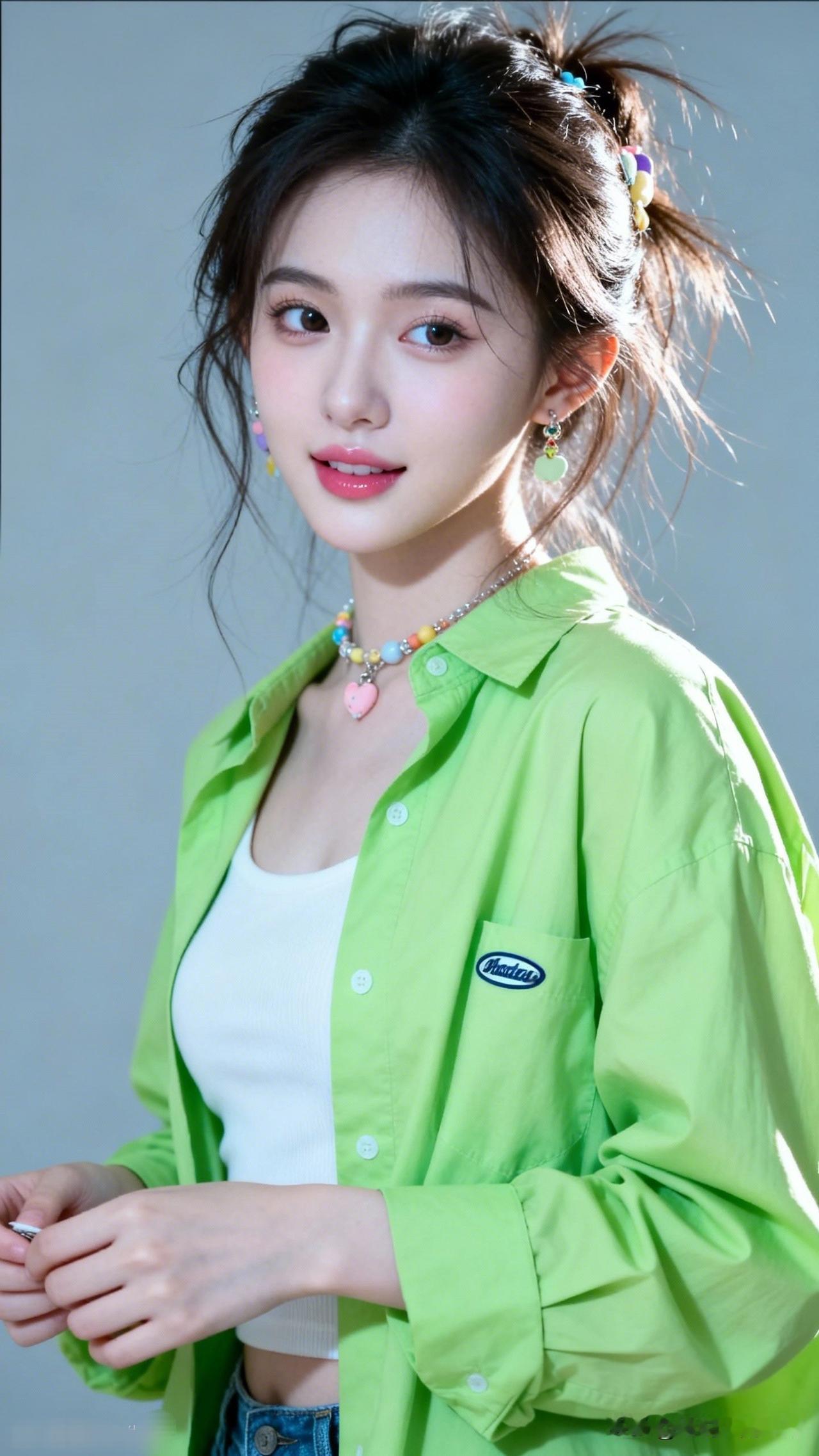 元气少女穿搭指南💚清新绿衬衫+白色背心,活力满满!高级感穿搭,温柔风穿搭。