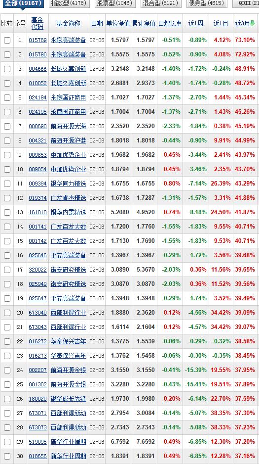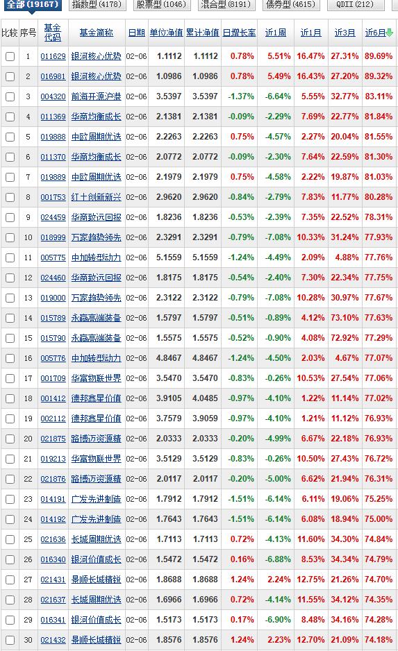我不止一次的强调对于前一年表现非常优秀的基金,第二年一定要远离!永赢科技智选今年以来的收益率是负3.20%,中航机遇领航今年以来的收益率是负3.46%。这两只基金是去年的年度榜前二,在近2万只基金里面鹤立鸡群。但是今年以来的排名已经排在了18000名开外。那你还觉得它们今年可以逆袭吗? 近半年收益排名前列的是,银河核心优势89.69%,前海开源沪港深乐享生活83.11%,华商均衡成长81.84%,中欧周期优选81.55%,红土创新新兴产业80.28%。 3月榜排名前五的是,永赢高端装备73.10%,长城久嘉48.91%,永赢国证商用卫星45.34%,前海开源大海洋45.19%,中加优势企业43.97%。永赢高端装备的表现明显是鹤立鸡群的存在。领先优势非常大!