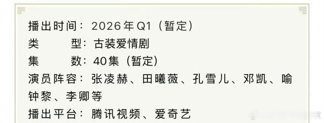 张凌赫、田曦薇《逐玉》开启播前招商,预计第一季度在腾讯/爱奇艺播出!!