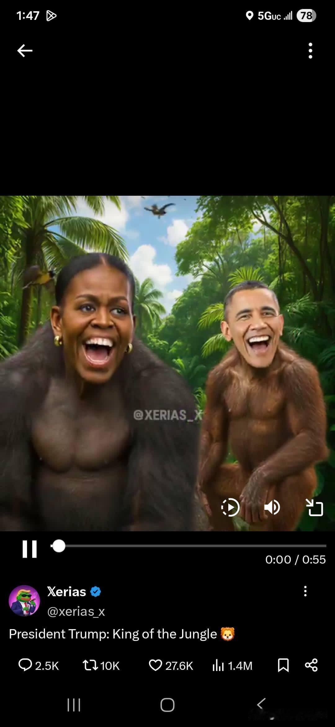 特朗普在其社交账户上晒出有辱奥巴马夫妇以及一大拨左翼名人的漫画照片。今天,这个帖子在社交平台炸锅了。从多数人的反应来看,大家都认为特朗普的帖子中有着浓浓等种族歧视的色彩。 作为一国领导人,对竞争对手或者感觉不爽的人进行人格污蔑化,这显然不合适。从竞争角度来说,也是一个低级的手段。