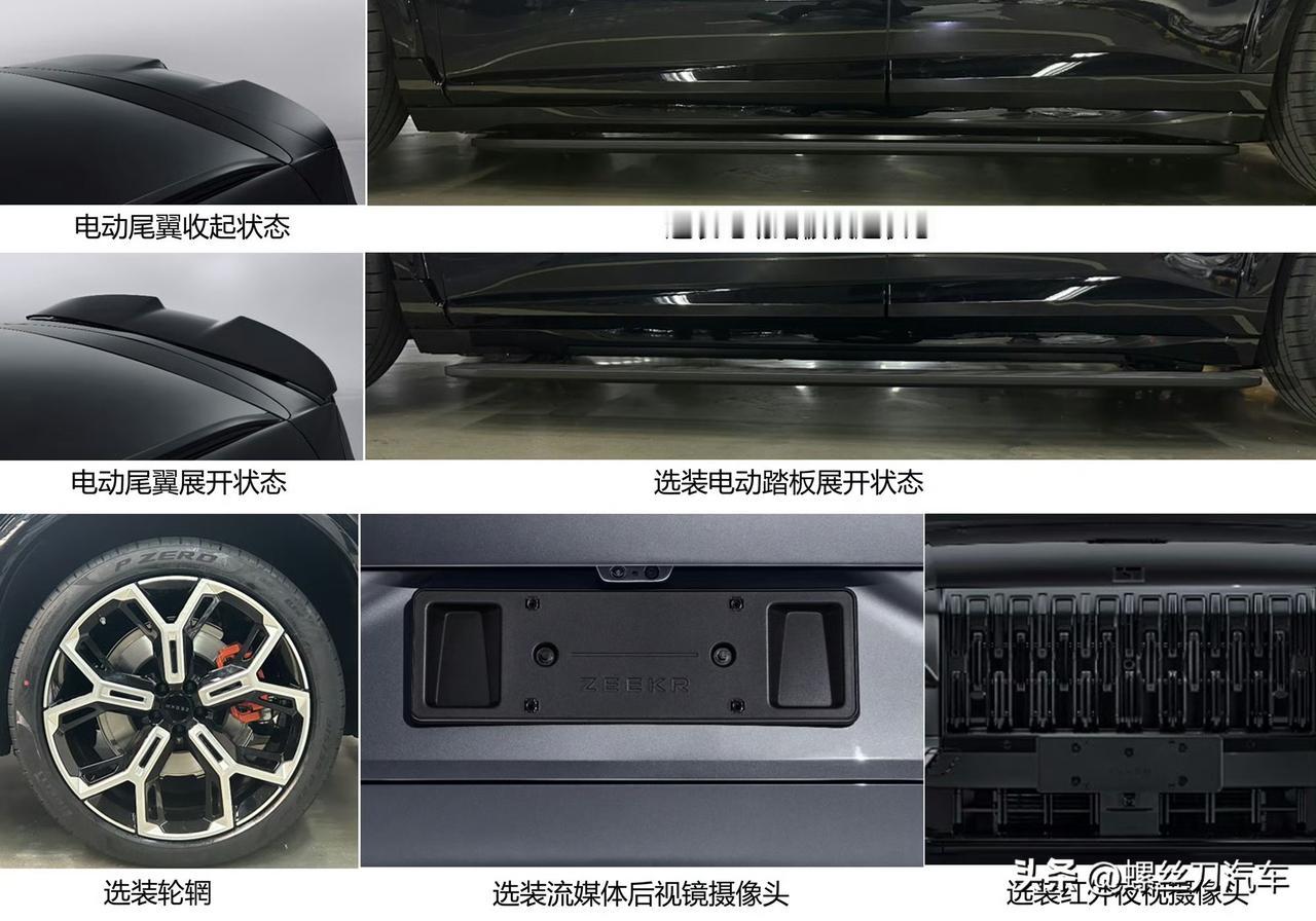全车黑化处理/配备激进运动套件!极氪8X性能旗舰版申报信息来了 日前,我们从工信部看到了极氪8X性能旗舰版的申报信息,预计售价50万起。此次申报的车型配备全黑外观套件、碳纤维组件、红色卡钳、315宽胎及大型电动扰流板。动力上车辆搭载2.0T插电混动系统,采用三电机系统,最大马力或达1400马力,最高速度提升至230km/h,并搭载红外夜视功能。 极氪一直强调操控和性能标签,这种原厂自带的改装风格,能帮它在同质化的家用SUV市场中,筛选出那些依然在意驾驶乐趣的年轻用户。大家期待吗?