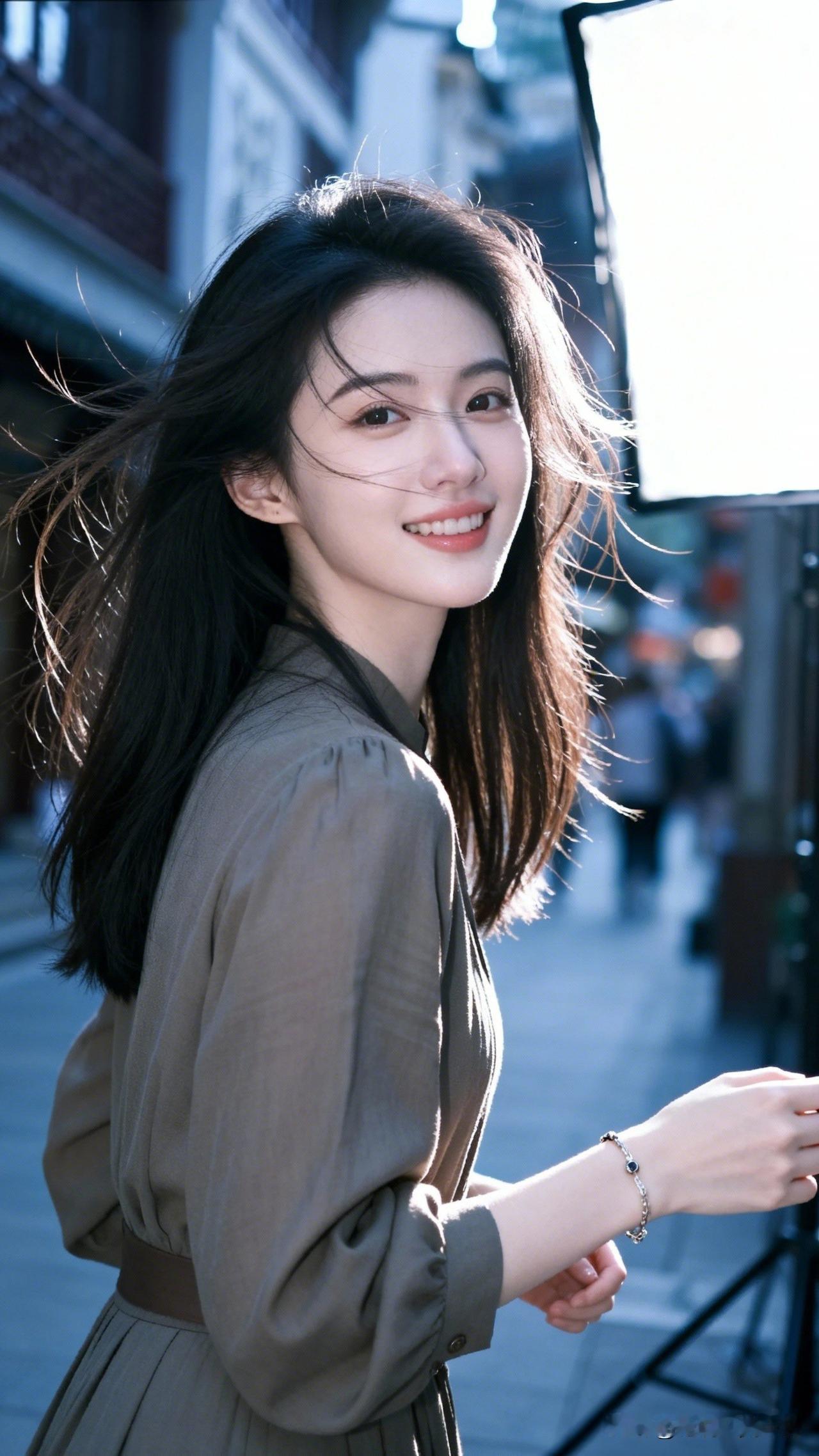 微笑的少女,温暖的光线,幸福的一刻。氛围感出片穿搭