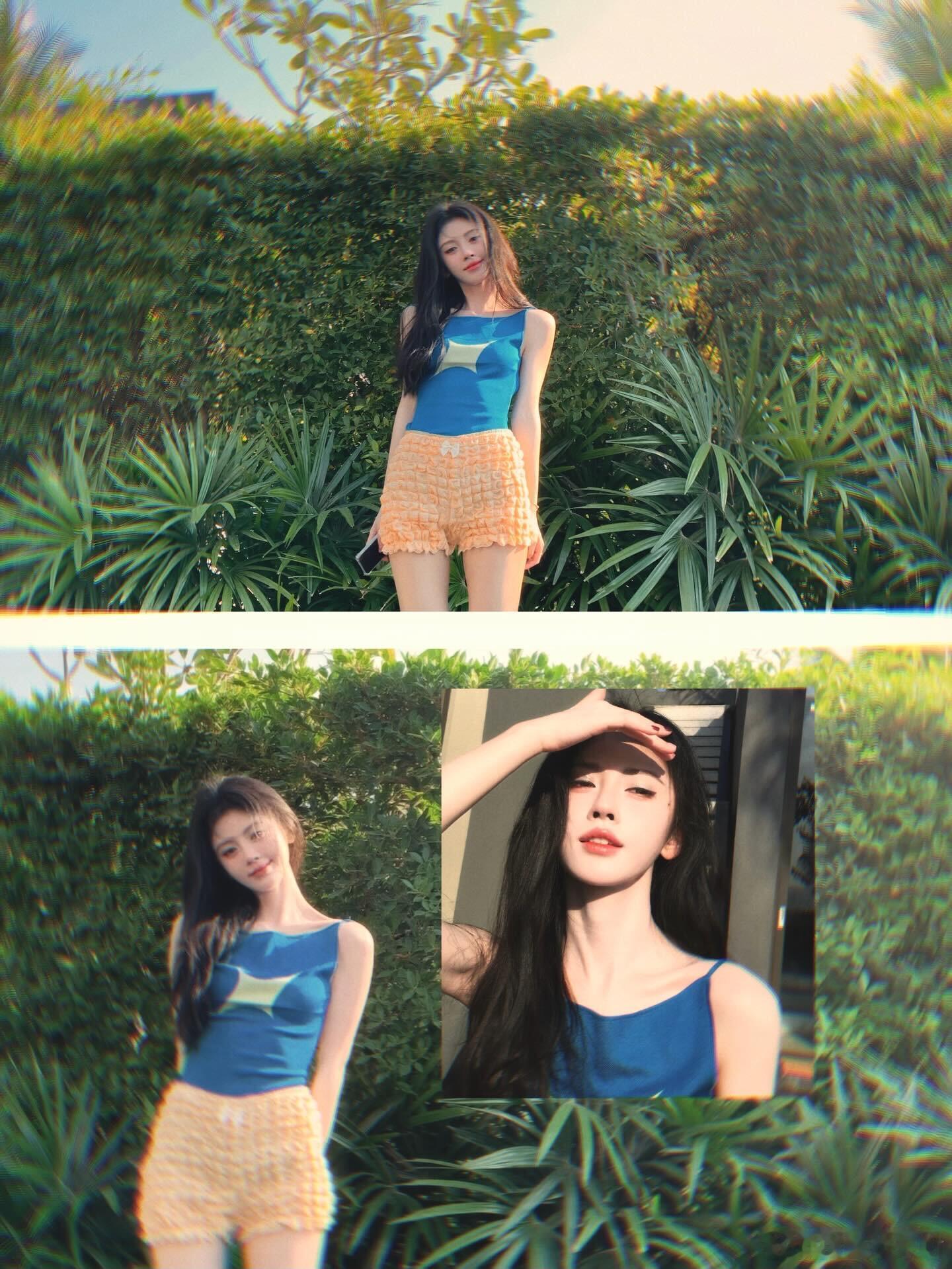 何穗穿比基尼好害羞啊,这腿是真的长