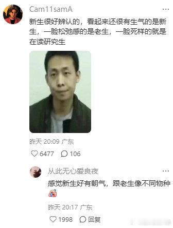 在学校里看到新生觉得他们好新