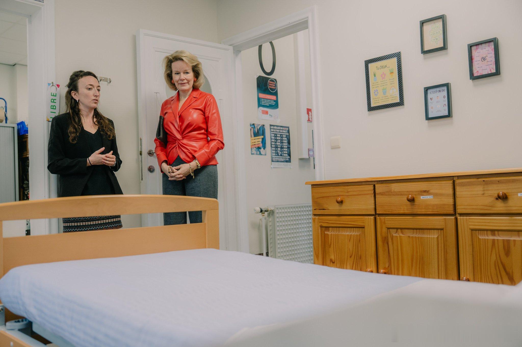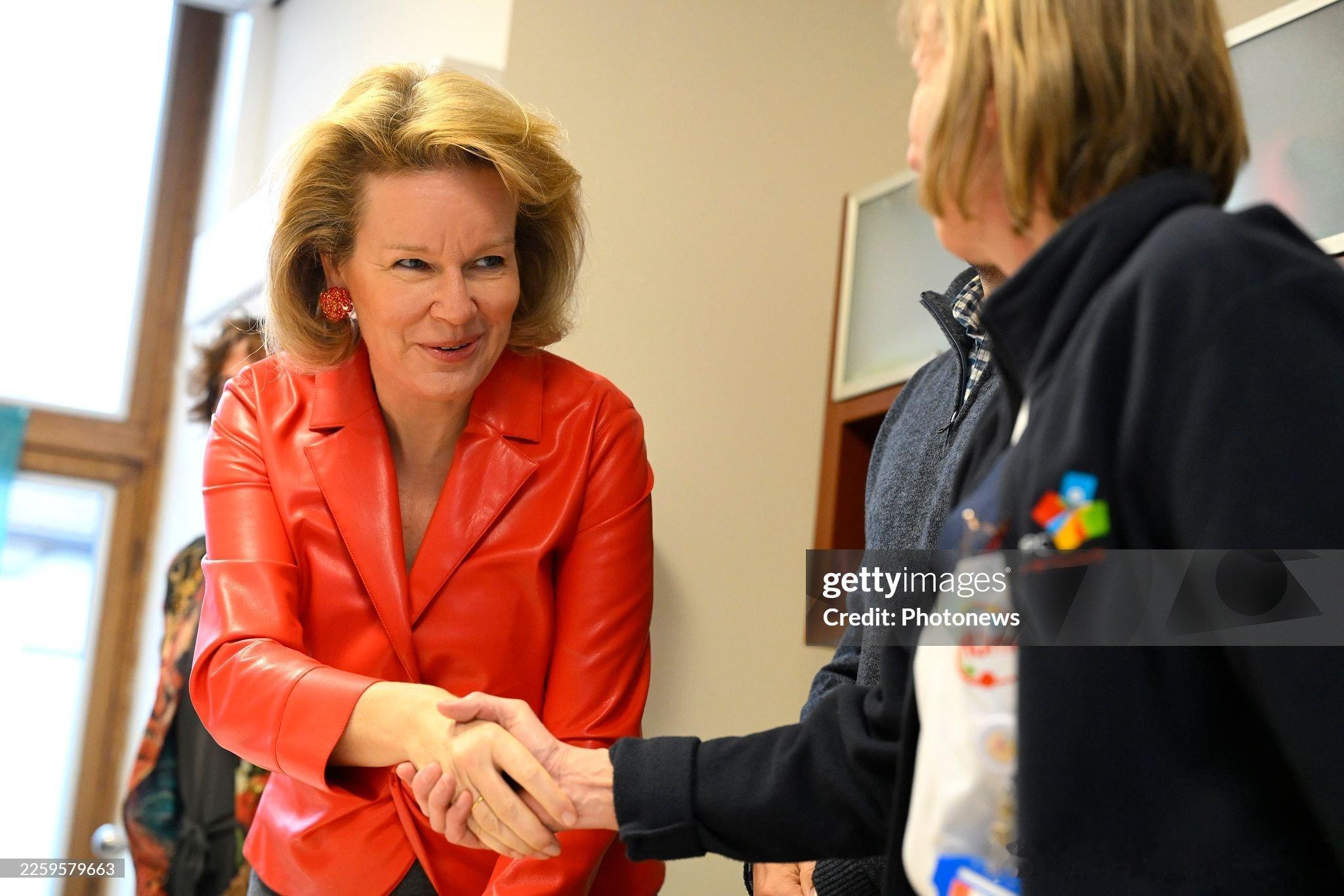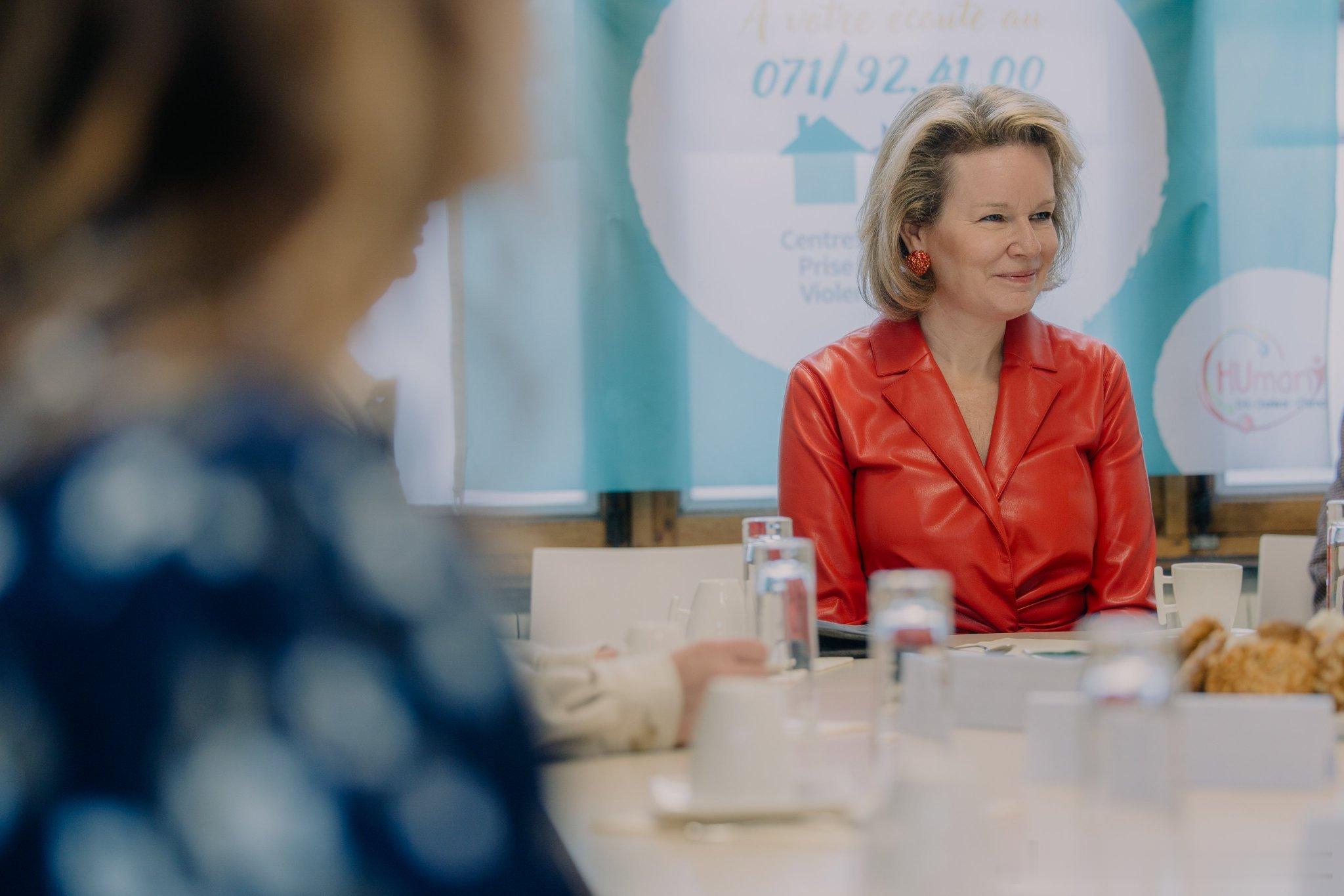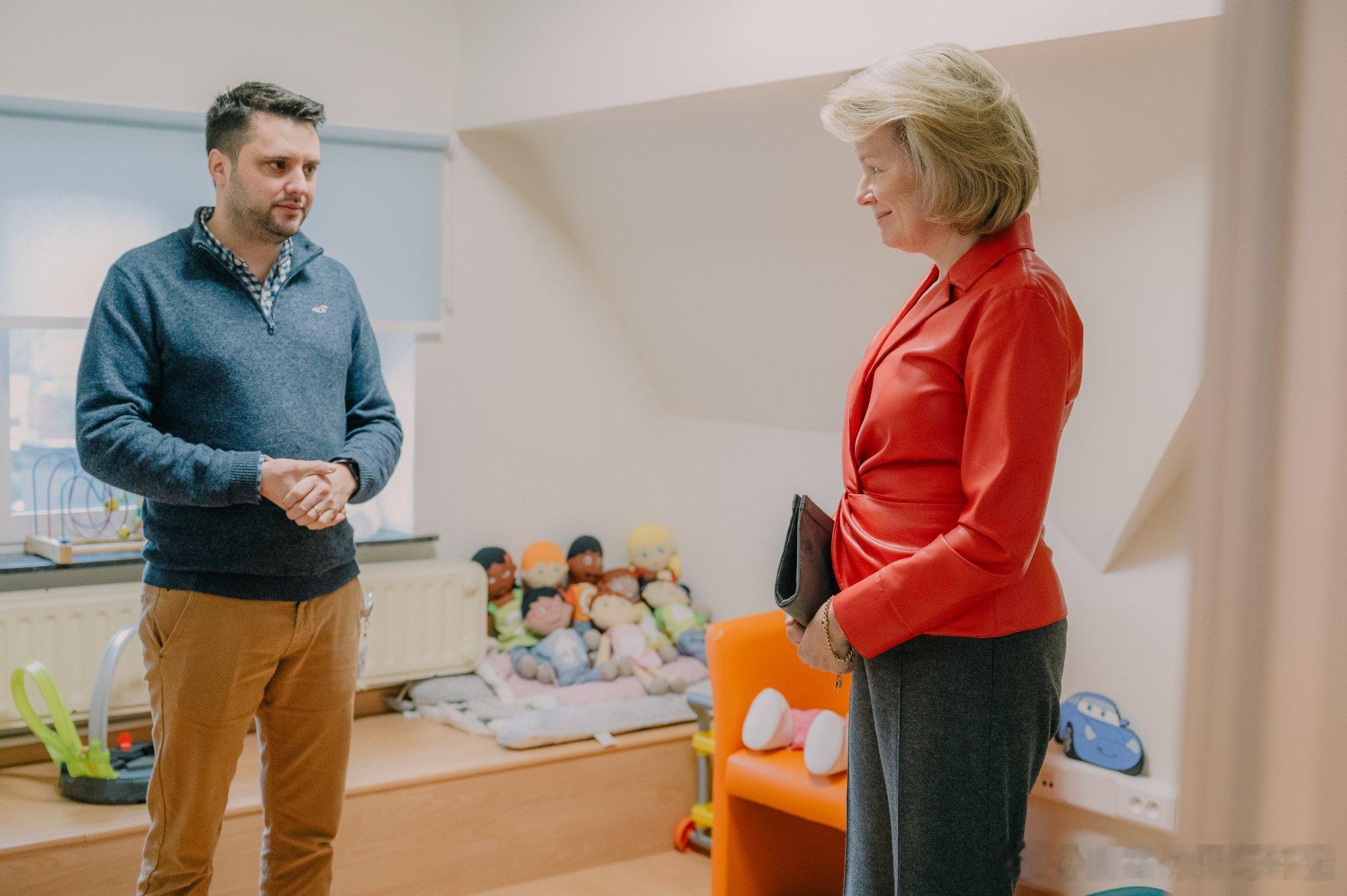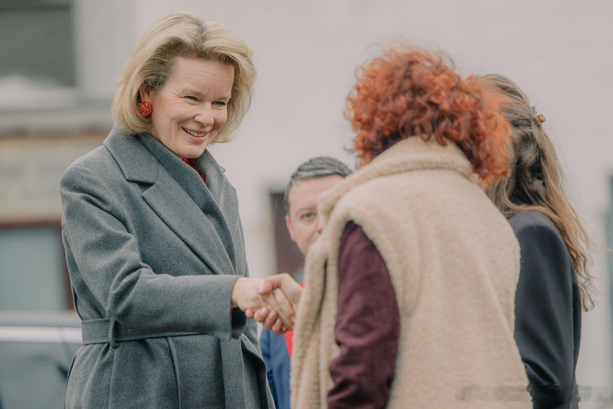 新闻 2026.2.6 比利时王后玛蒂尔德访问洛德林萨特性暴力援助中心(CPVS),该中心致力于帮助并给予受害者医疗、法律和心理方面的支持,玛蒂尔德的膨胀皮衣来自Natan。