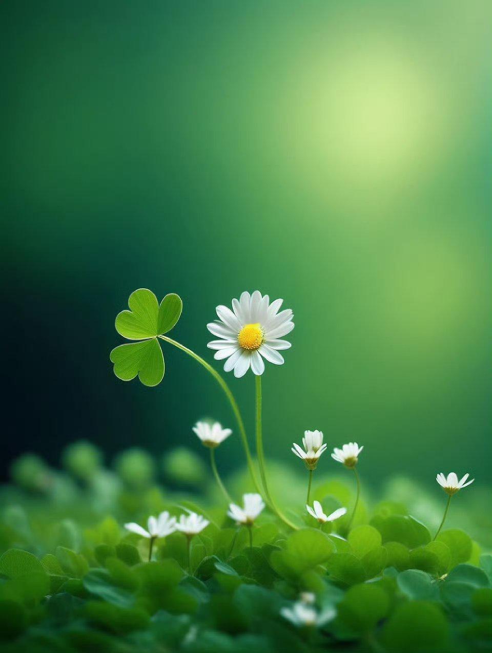 四叶草遇见了小雏菊,寓意幸运和开心快乐时时伴随着你。