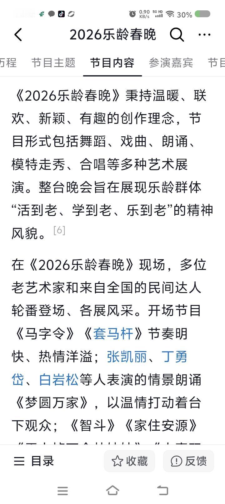 什么“乐龄”?—— 据报道,近日,乐龄春晚播出。陈佩斯、朱时茂串场表演…… 点评: 一、什么叫“乐龄”?这个念“le”还是“yue”?资料说,这个词来自新加坡。“乐龄”即“老年”,退休了,自由了,快乐了。是这样么? 二、建议不要用这个词,“乐”为多音字,易产生误解。有生造之嫌。 “夕阳红”,多好的意象。 三、陈佩斯、朱时茂的表演尴尬,因为它似乎混合了主持、小品功能,十几分钟,不伦不类,观众无所适从。节目组的问题。两人正式演一个小节目,都比这强。 四、那个说“我想死你了”的同志,你有节目么?有就上。不要老说那些吉祥话口语诗,不要试图当主持人。