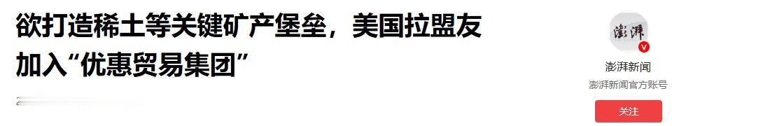 55国围堵中国?鲁比奥带头喊话,美国这场“稀土豪赌”注定要输 55个国家的代表齐聚在华盛顿,唯独缺了那个全球最大的“玩家”—中国。这哪里是开会,分明就是一场精心策划的“围猎”。 鲁比奥站在台前声嘶力竭,誓要打破所谓的“垄断”,可这场针对中国稀土的布局,真能如美国所愿吗? 当地时间2月4日,美国召开“关键矿产部长级会议”,根本不是讨论什么商业合作,而是政治站队。 由美国副总统万斯主持,国务卿鲁比奥亲自牵头,拉来了从亚洲的日本、韩国,到欧洲的英法德,甚至还有非洲的刚果金。 这阵仗确实吓人,55个国家加上欧盟委员会,几乎囊括了半个地球的经济体。 但是,作为全球稀土供应链绝对核心的中国,竟然连张邀请函都没收到。这摆明了就是要在全球矿产领域搞“去中国化”,试图硬生生造出一个没有中国的平行世界。 美国这次是动了真格的,甚至可以说是下了血本。早在会议召开前的两天,美国就启动了所谓的“金库计划”,一口气注资120亿美元,扬言要建立战略矿产储备。 而这次大会的核心,更是抛出了一个“关键矿产优惠贸易区”的构想。鲁比奥的话说得很直白,他把关键矿产定义为“地缘政治杠杆”,直指中国的“垄断”必须被打破。 可是,美国人似乎忘了,产业链的形成从来不是靠政客嘴皮子动出来的,而是市场几十年优胜劣汰的结果。 看看数据就知道美国面临的现实有多残酷。根据国际能源署和美国地质调查局的数据,2023年中国控制了全球92%的稀土加工环节,分离产品的供应占比更是接近90%。 全球绝大多数的高科技产品,只要用到稀土,就绕不开中国。美国自己70%的稀土进口都依赖中国,现在想通过开几次会就翻盘,简直是天方夜谭。 更要命的是成本。中国在稀土分离领域的成本比美国低了30%到40%,比欧洲更是低了一半以上。 万斯在会上大谈“市场保护”,抱怨廉价矿产淹没了美国制造商。 美国提出要设定“价格下限”,还要搞可调节关税,这不就是变相承认,如果不搞贸易保护主义,美国的企业根本活不下去吗? 而且,美国拉拢的这些盟友,心里也都打着自己的算盘。日本外务副大臣堀井岩虽然在会上表了态,欧盟也派人来了,但大家心里都清楚,美国这套“美国优先”的玩法有多坑人。 路透社的分析:美国一边在关税政策上对盟友重拳出击,一边又想在矿产上拉拢盟友,这种“打一巴掌给个枣”的策略,谁能真心买账。 欧盟虽然嘴上支持,但一直强调环保标准,这跟美国只顾地缘政治安全的粗暴做法,根本不在一个频道上。 战略与国际研究中心的专家斯科特·肯尼迪也说了实话,美国现在是承认“单干不行”了。但问题是,美国这种强压式的“合作”能维持多久? 特朗普政府之前因为资金问题,连国内的价格保障计划都放弃过,现在又拿关税威胁盟友必须在180天内达成协议。 这种朝令夕改、唯我独尊的行事风格,让盟友们怎么敢把身家性命压在美国身上?韩国的三星、LG虽然在调整采购,澳大利亚也在增加出口,但谁也不敢彻底切断与中国的联系。 归根结底,美国是在试图用政治意志对抗经济规律。 中国在稀土领域的技术壁垒和全产业链优势,不是靠几百亿美元补贴就能在两三年内复制出来的。特别是在中重稀土领域,中国的优势几乎是压倒性的。 美国想要建立一个排斥中国的供应链,最终结果很可能不是孤立了中国,而是割裂了全球市场,最后为此买单的,还是美国自己的消费者和制造业。 这场豪赌,美国从一开始就注定赢不了。