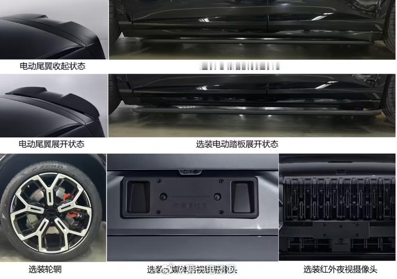 极氪8X 通过工信部申报:全黑车身搭配红色卡钳,展现出“黑武士”风格,同时电动尾翼的加入进一步增强了其运动感。除了黑色版本,工信部还公示了全新的白色版本。