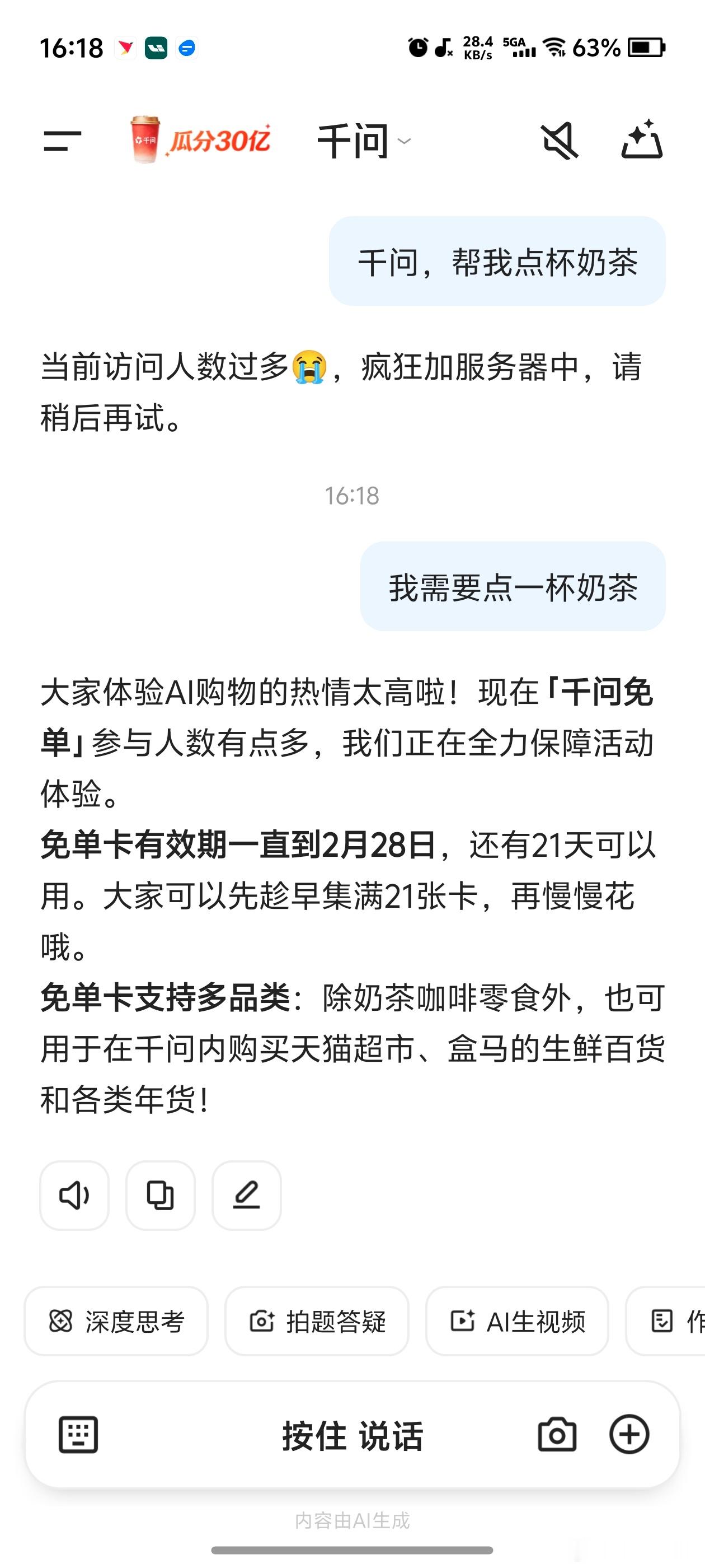 有人像我一样,千问免单卡领了不少,但是还没成功点过一杯奶茶吗?