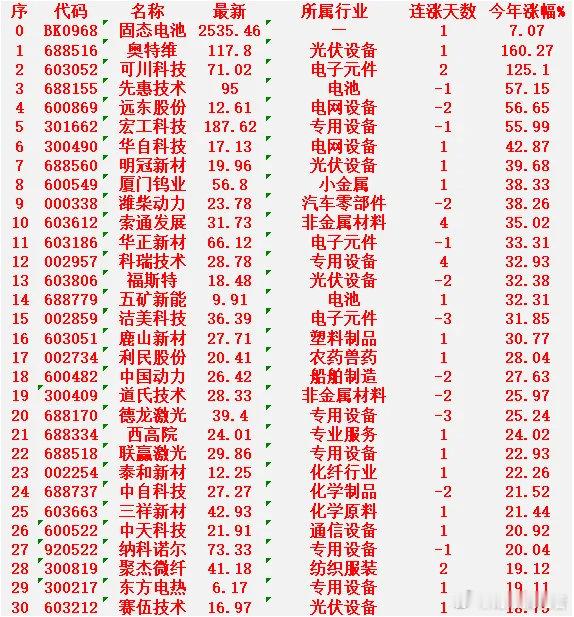 固态电池概念,2026年以来涨幅最多的30名单汇总一览