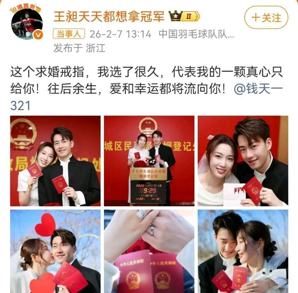 王昶钱天一官宣时间是1314 真是喜结良缘兵羽一家亲[男孩儿][女孩儿],恭喜这对新人🥰新婚快乐🎉