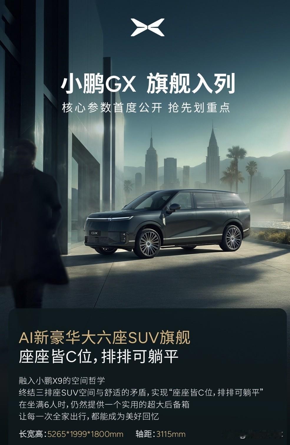 “大湾区揽胜”!小鹏GX申报图来了:纯电+增程动力/预计4-5月上市 日前,我们从工信部看到了小鹏GX申报图,新车定位AI新豪华大六座旗舰SUV,此次申报了纯电版和增程版,增程版纯电续航320km,新车预计4-5月上市。 增程版和纯电版的设计基本保持一致,新车采用了稳重的配色,尤其是深灰色,还搭配了金色的装饰,更显高级感。整车采用长轴距、长后悬、悬浮式车顶的设计,被网友戏称“大湾区揽胜”。 动力方面,增程车型搭载1.5T增程系统,发动机最大功率110千瓦,前后双驱动电机,最大功率分别为160千瓦和210千瓦,最高车速200km/h,纯电续航320km。纯电车型同样搭载双电机,前后电机最大功率分别为160千瓦和270千瓦,最高车速200km/h。结合多方信息来看,小鹏GX基于SEPA 3.0平台打造,支持800V架构,同时搭载的也是小鹏品牌最前沿的技术体系,比如线控转向+后轮转向。 过去几年,小鹏在智驾领域积累了足够的口碑,但受限于纯电形式和产品尺寸,始终难以切入家庭用户的核心腹地。小鹏GX的出现,说明小鹏调整了策略,他们开始在空间定义和能源形式上,向更广泛的市场需求靠拢,这款车将会是小鹏2026年在高端市场最重要的销量来源,我们也将拭目以待!