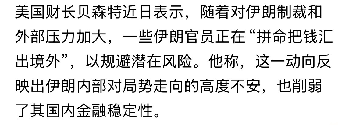 伊朗官员正加速外逃资产… ~贝森特