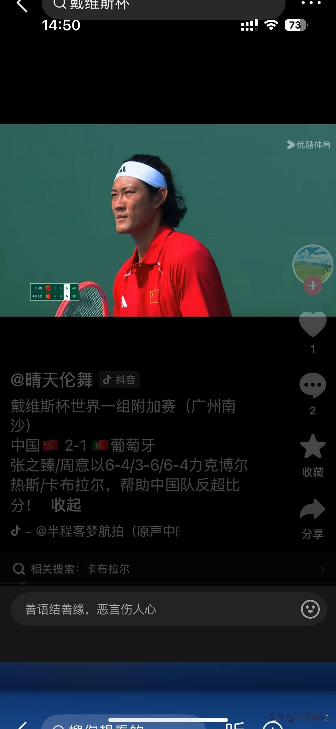 ✅快讯,恭喜中国队晋级戴维斯杯世界一组🔥🔥 张之臻7-5、6-4战胜葡萄牙博尔赫斯,中国队以3-1的总比分击败葡萄牙队,成功晋级戴维斯杯世界一组! 期待中国男网能延续此次戴维斯杯的良好状态,在后续的赛事中再创佳绩,为中国网球书写更多辉煌。
