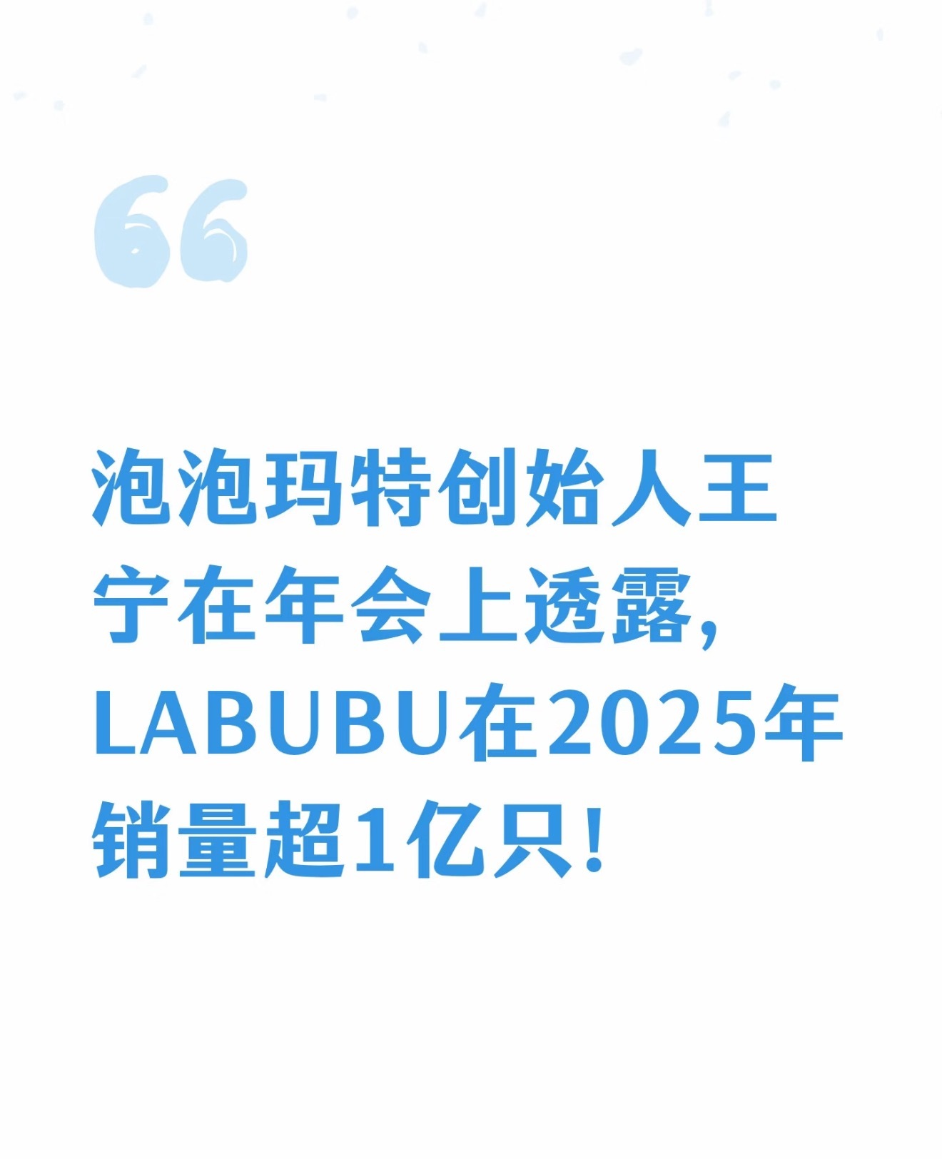 LABUBU全年销量超1亿只LABUBU年销量超1亿只泡泡玛特揭秘LABUBU销量 泡泡玛特2026年年会公布2025年核心经营数据,全球员工超1万人、注册会员破1亿;旗下LABUBU全年销量超1亿只,全品类全IP产品总销量超4亿只。目前品牌业务覆盖超100个国家和地区,全球门店数达700余家,布局6大供应链基地,同时赋能超20万个就业岗位。