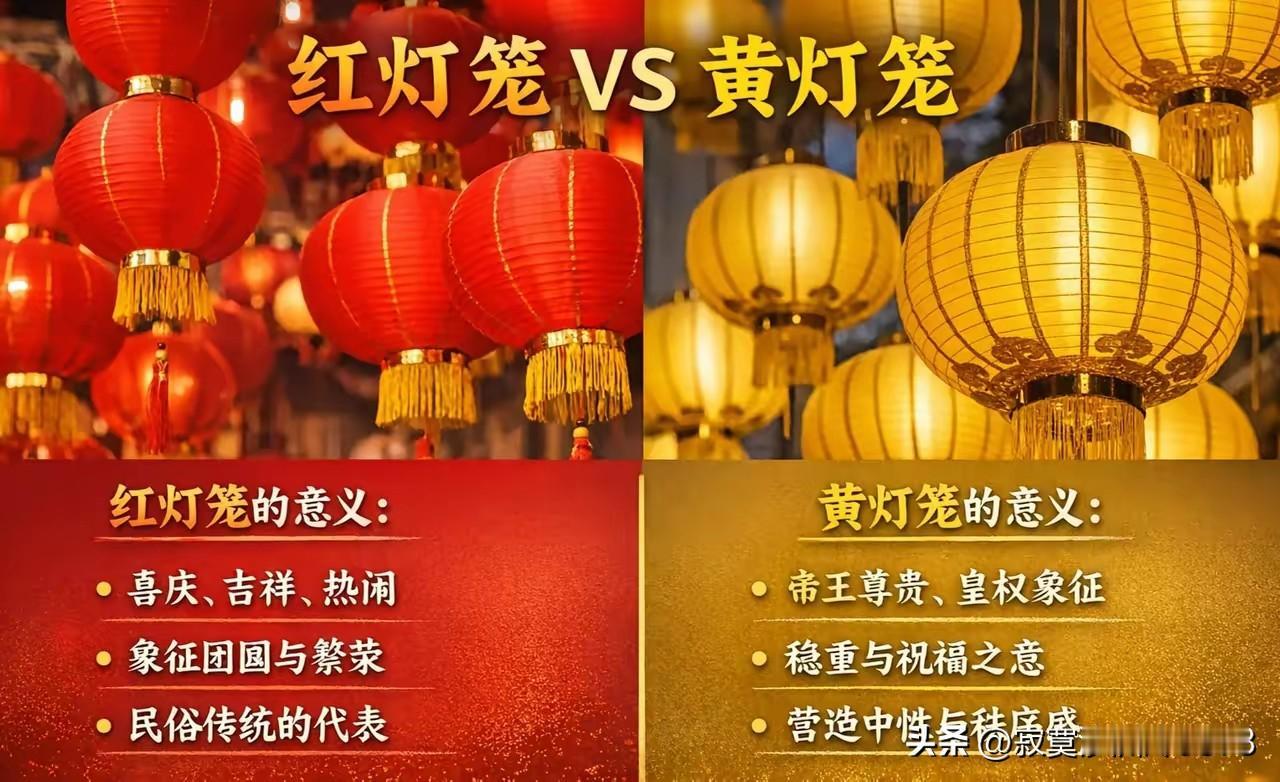 红就是红,黄就是黄,二者不可混为一谈。春节就该大红灯笼高高挂,此乃千古不变之理! 今年春节还没到呢,就出现了不一样的现象! 全国各地有不少城市摒弃以前的红灯笼,挂起了黄灯笼! 不管怎么说,红黄橙绿紫,每种颜色在不同的场合,都有不同的用途和意义。 我们在追求创新的同时,不应该轻易抛弃传统和习俗! 中华上下五千年的文明史,能够传承下来的事物,肯定有它的道理!