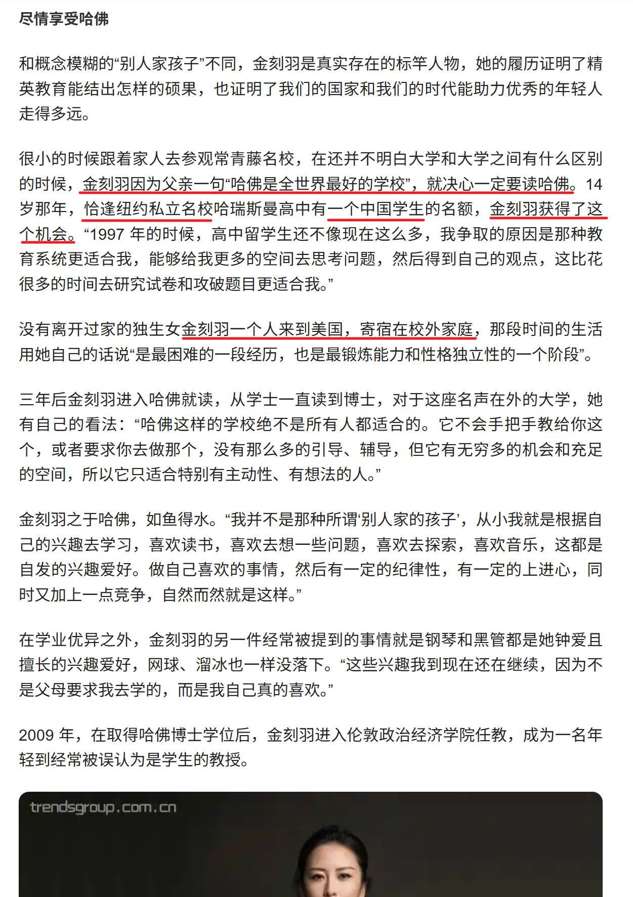 金刻羽:耀眼人生,无须设定! 文字重点是红线部分:恰逢xx高中有一个中国学生名额,金刻羽获得了了这个机会。 怎么就这么巧,这个高中就恰好有一个中国学生名额呢?而且只有一个名额。怎么又恰巧被他们偶然得知了呢?别人怎么就不知道呢? 说实在的,看到过其他人物也有这样的描述,熟悉的文字风格,不知道这套话术还能骗中国人多久!