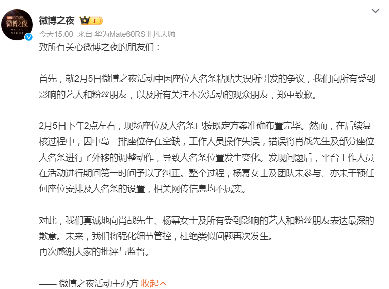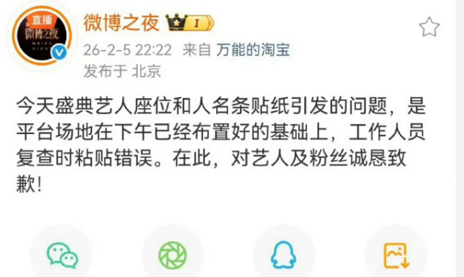 微博之夜终于到道歉了