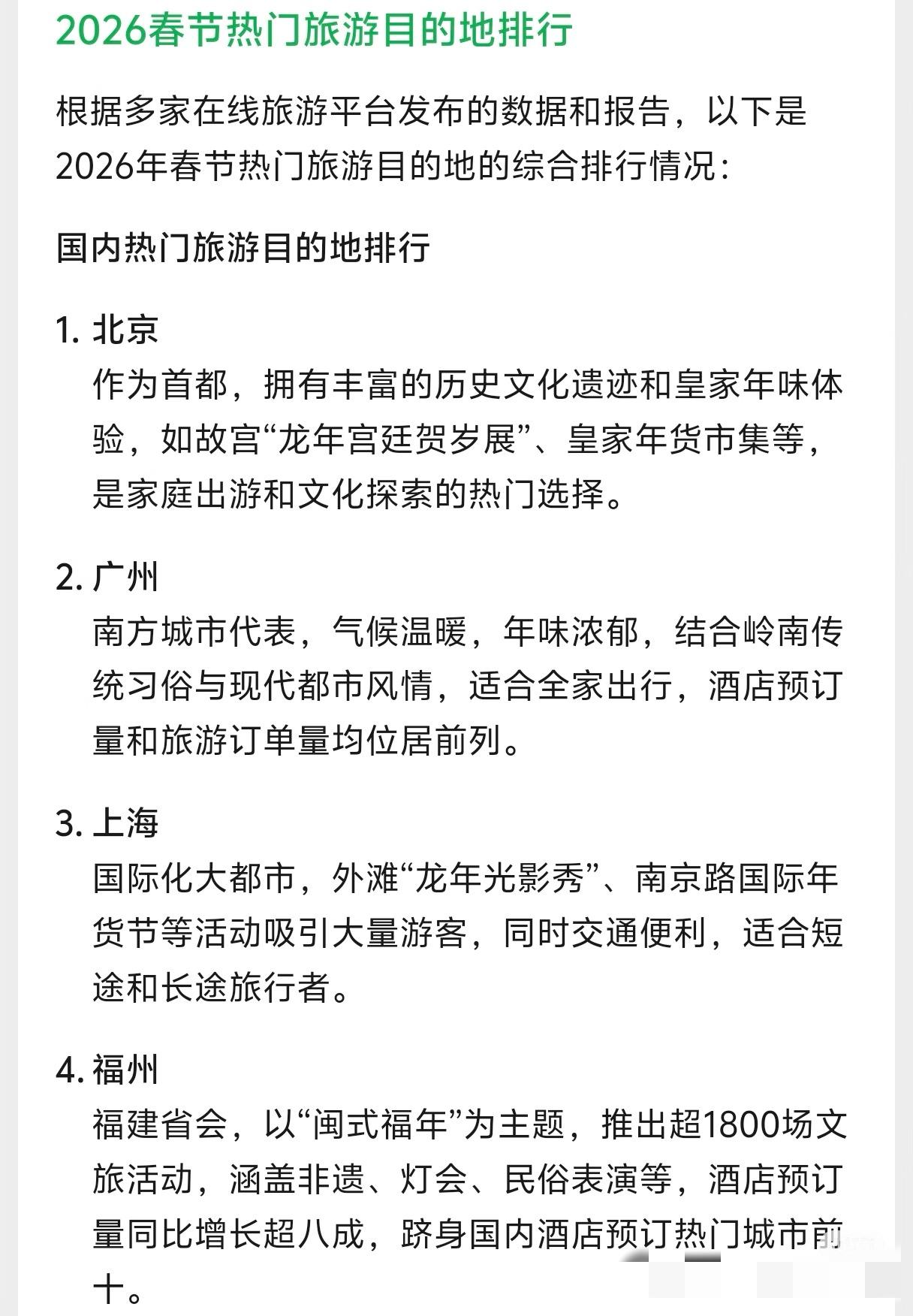 福州超越三亚成为春节旅游热门城市第四名 福州来旅行或旅居都挺适合的。蓝天白云绿树成荫,小吃也多,地铁公交也挺方便。地铁还能直达海边,不过通车以来我还没去过。
