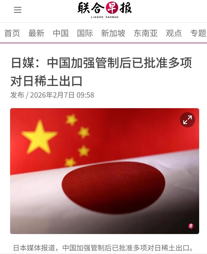 日本大选最后一天,高市早苗:中方已批准多项对日稀土出口!   2月7日,高市早苗