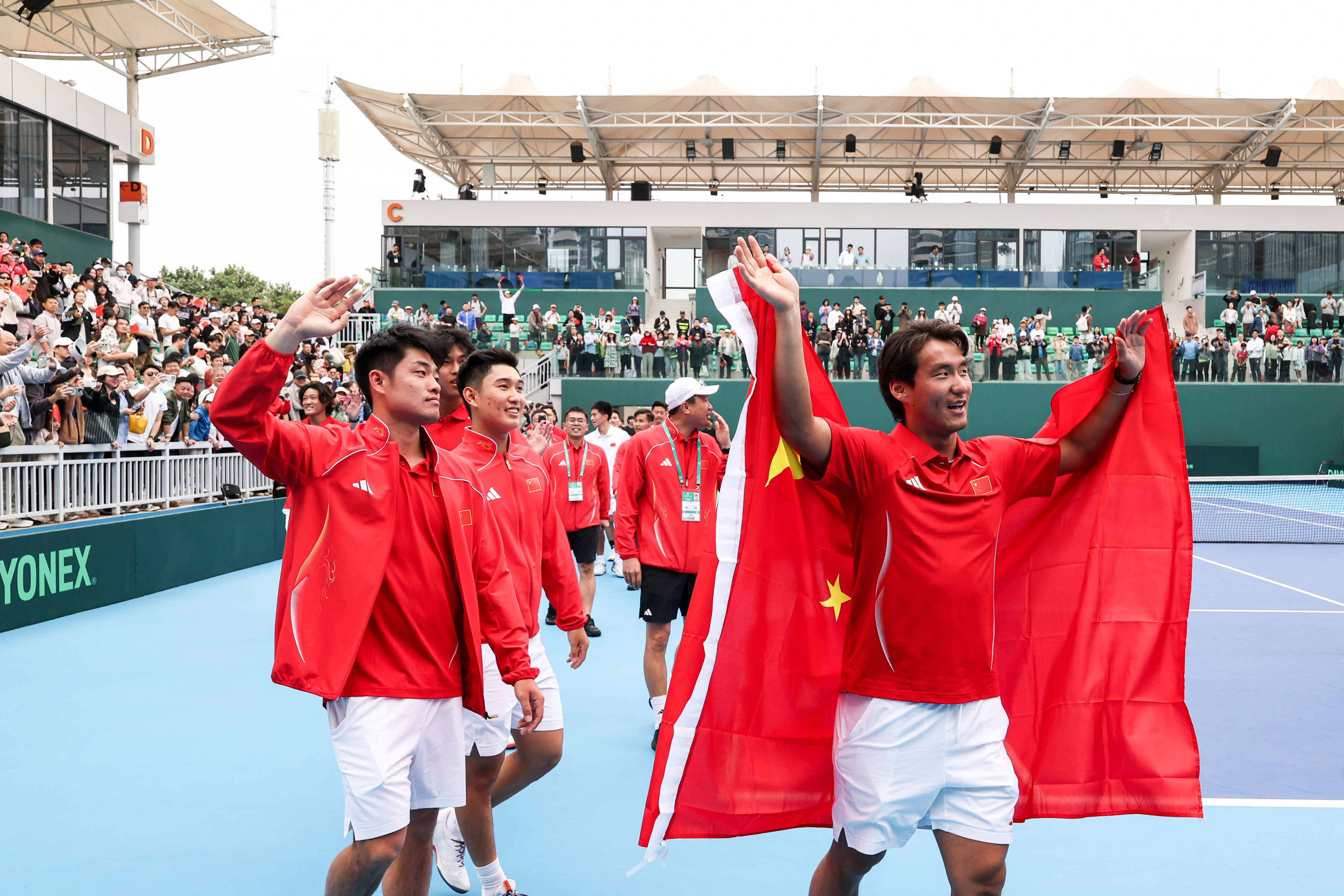 今天南沙的中国红好靓🇨🇳恭喜中国队跻身世界I组🎉戴维斯杯中国vs葡萄牙