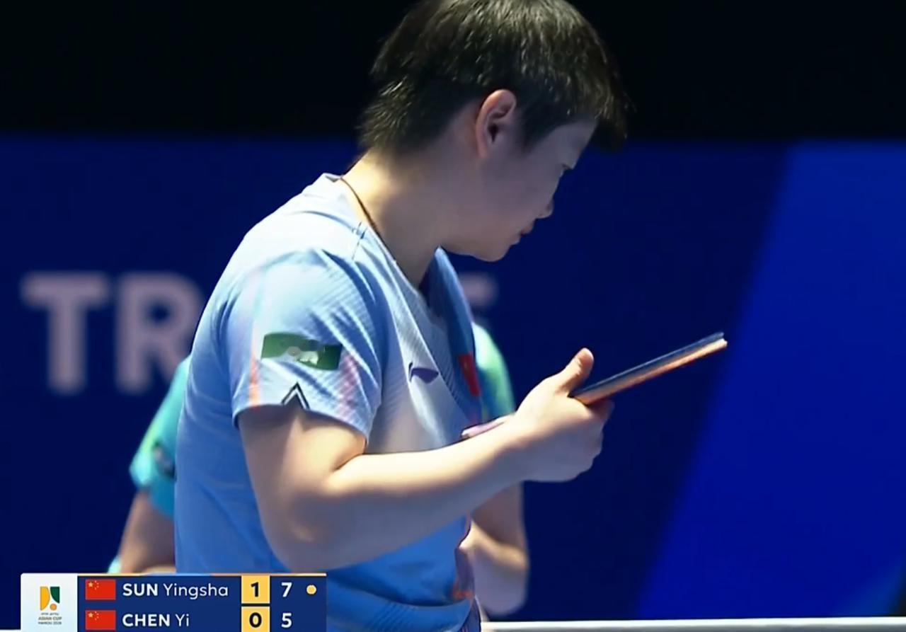 刘国正一不小心,说出了陈熠的弱点。 周冠达说:陈熠护台面大, 刘国正说:但是她也慢。 第一局 孙颖莎和陈熠打成4:4平后, 孙颖莎连赢7局, 11;4拿下 第二局 孙颖莎4:0开局 然后陈熠连追4分 又是4:4平, 孙颖莎连赢3球, 7:4拉开分数, 陈熠追到了7;8, 孙颖莎开始加速, 10;7拿到局点, 11:9拿下