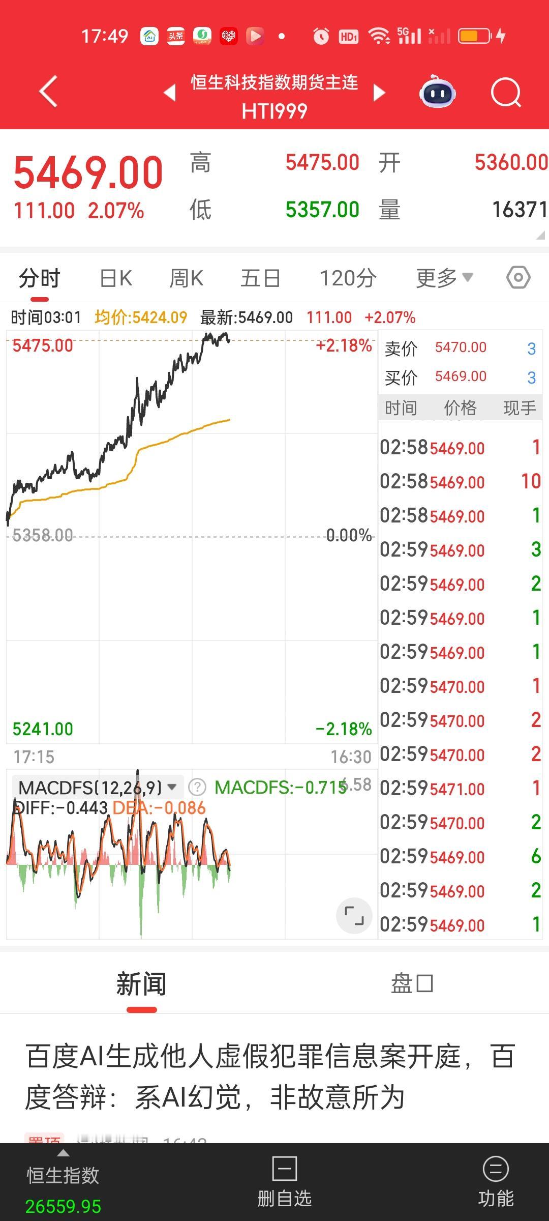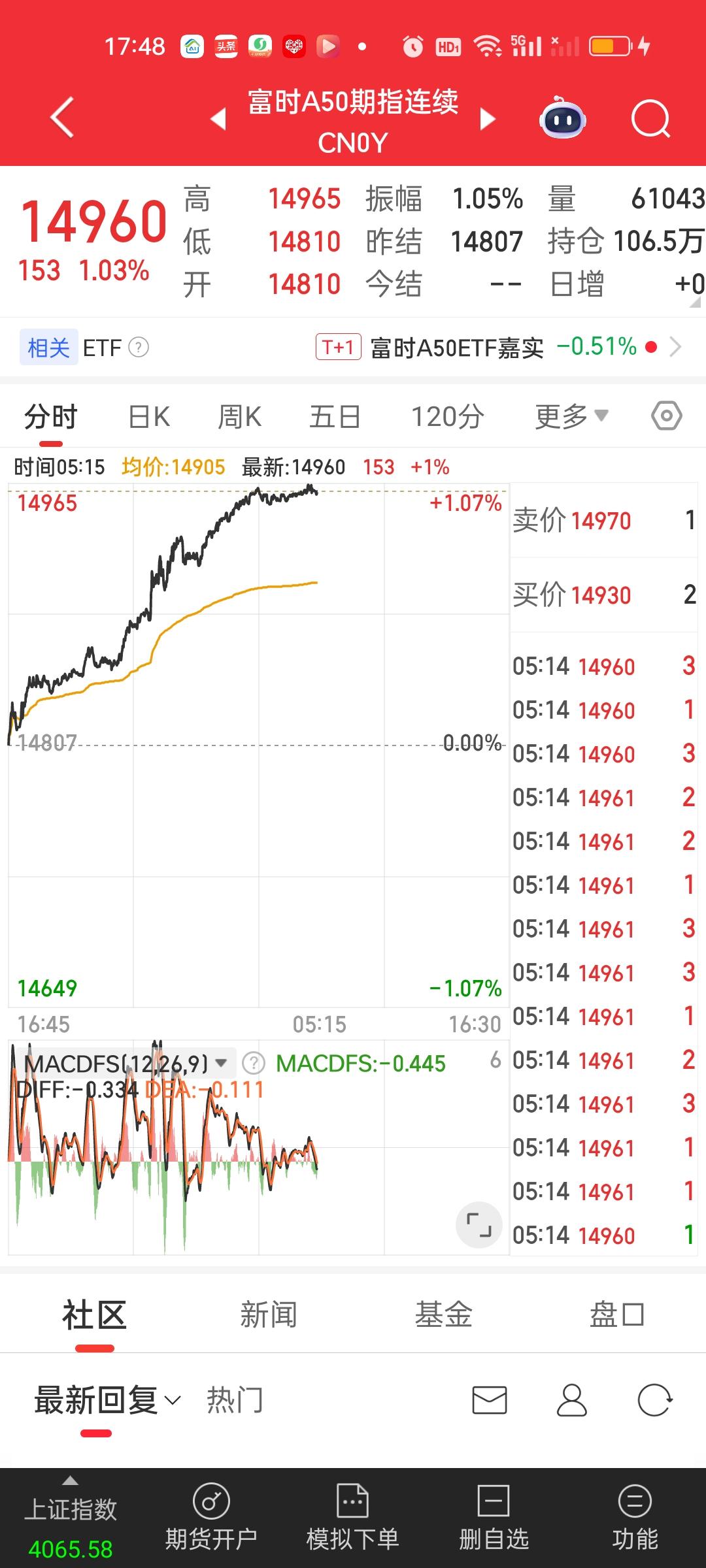 周五收盘外围市场涨得非常不错。恒指期货,恒科期货都是大涨的状态,富时A50,美股