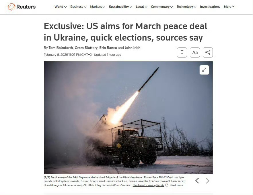 据《路透社》报道,美国和乌克兰正在探讨在2026年3月份前达成俄罗斯与乌克兰和平协议的可能性,但重大分歧(领土问题)使这一时间表存疑。正在讨论的提案中将在乌克兰举行全民公投,并与全国大选同时进行,华盛顿正推动最早于5月举行。