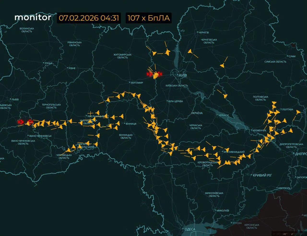 (图一)俄罗斯空天军昨晚改变了空袭战术再次对乌克兰实施大规模空袭,首先, 由超过200架大型自杀式无人机天竺葵系列组成的蛇形编队从俄罗斯别尔哥罗德州起飞绕飞乌克兰文尼察州,数百架自杀式无人机的间隔距离数百公里, 分阶段借此探测飞行走廊, 随后, 自杀式无人机根据目标区域分散成多个空袭集群攻击目标。此后, 俄罗斯两艘海上导弹舰进入黑海, 发射了数枚"口径"巡航导弹和两枚"锆石"高超音速弹,临近今天凌晨5时, 俄军图-160和图-95M战略轰炸机升空, 同样对目标实施了导弹齐射。此次打击的主要目标是布尔什廷和拉迪任斯卡两座热电站,这俩目标已经完全失去供电和供暖能力。(图二)是昨天和今天凌晨俄罗斯大规模空袭乌克兰西部的武器飞行航线,黄色是自杀式无人机,红色和绿色分别代表口径巡航弹和Kh-101巡航弹,淡紫色代表锆石高超音速弹。几乎所有的自杀式无人机和巡航弹全部从文尼察南部飞过去,基辅正北部有少量自杀式无人机攻击, 能够吸引乌克兰防空力量主力,大批量的俄罗斯自杀式无人机绕道从基辅市南部发动攻击,乌克兰很有限的防空装备或系统根本忙不过来。