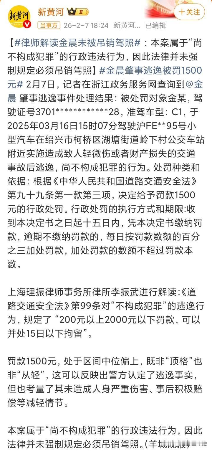 金晨顶包案结果出来了,被罚1500,助理未经同意私自顶包,金晨没有骗保,没有指使人顶包,所以没被吊销驾照,也没被扣分,所以没多少责任,但因为是名人,所以还是罚了她1500。 看完金晨的最新报道,我的理解就是这样,不知道有没有人和我有一样的感觉。另外就是,相关通报没提到助理,不知道等待这位打工人的,究竟会是什么处罚?