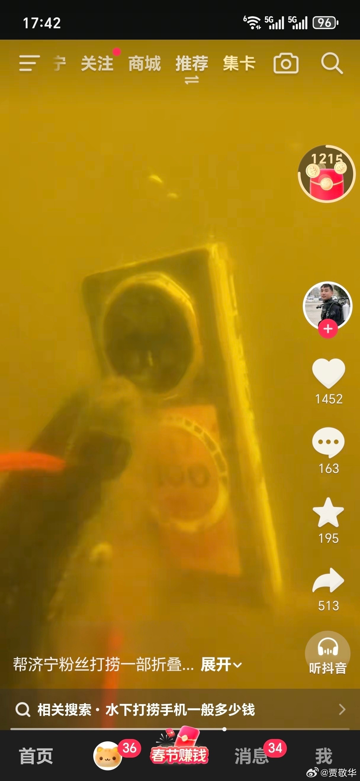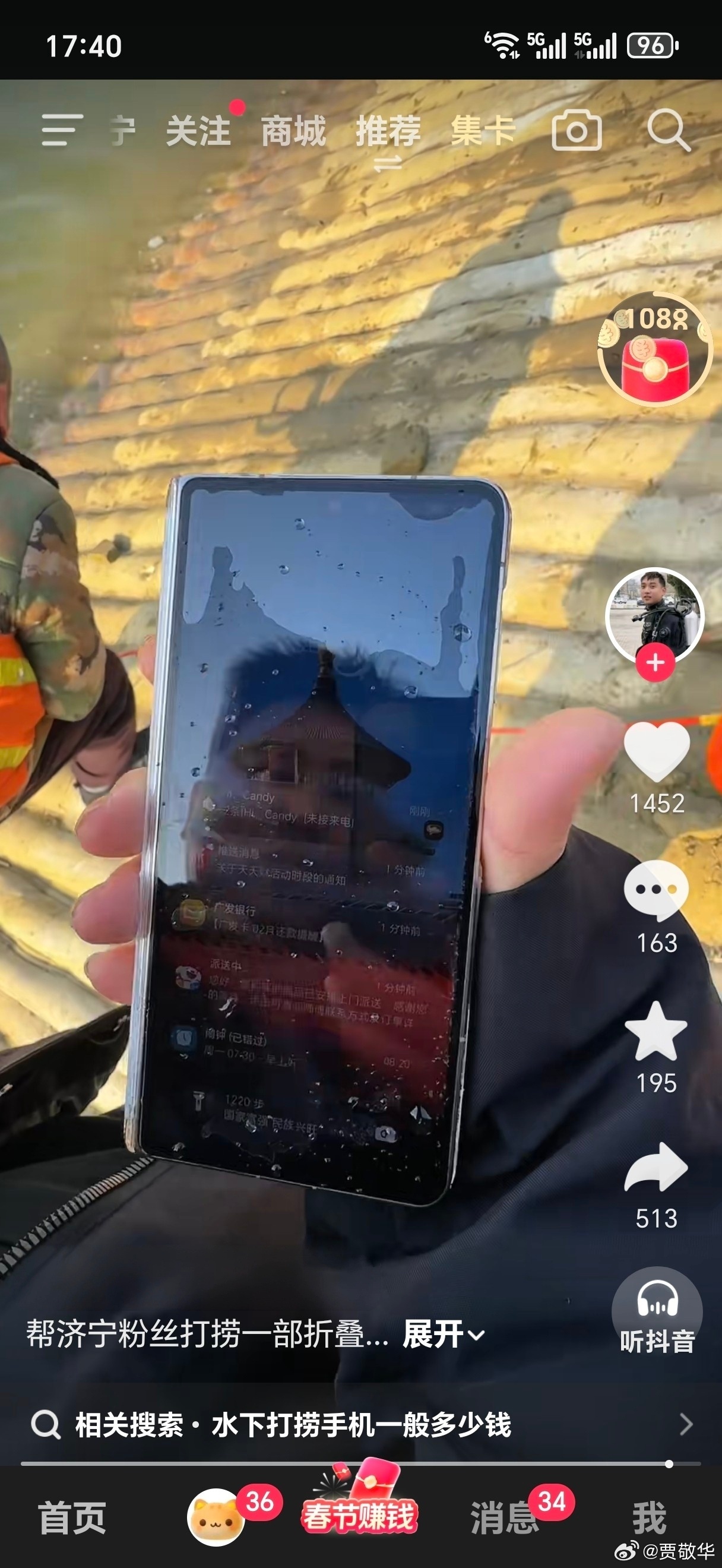 大济宁的粉丝真豪横,折叠屏手机掉到大运河里了,找了专业的潜水员去捞手机。幸运的是,手机找到了,而且没坏。