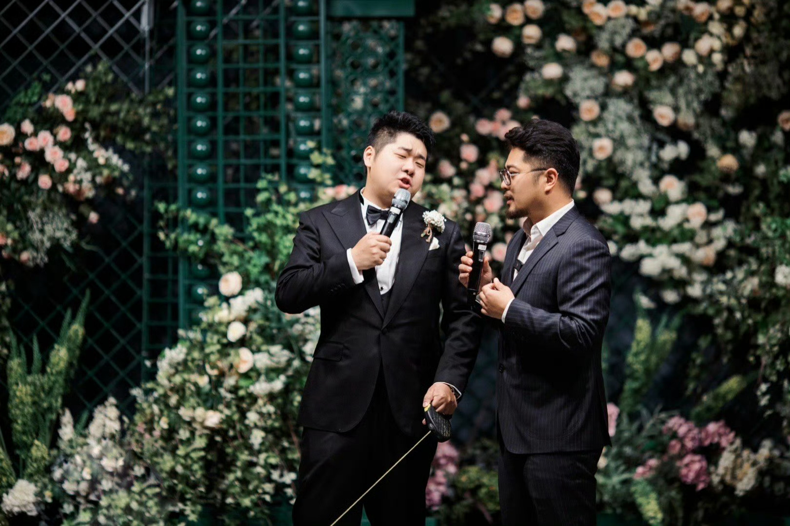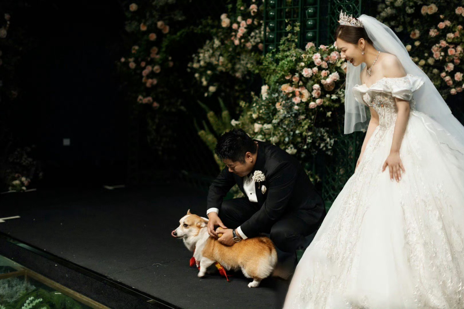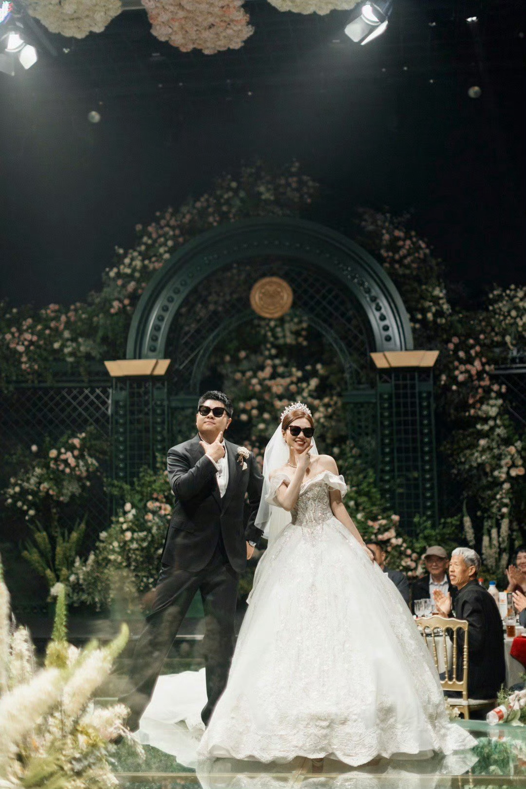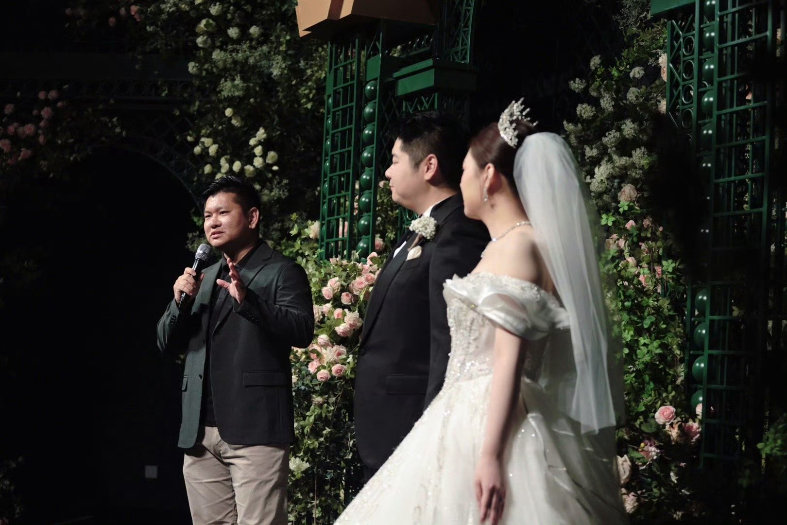 车用的现成的,主持人白嫖的,婚礼节目嘉宾白嫖的,送戒指的小童是自家的,都没花钱。