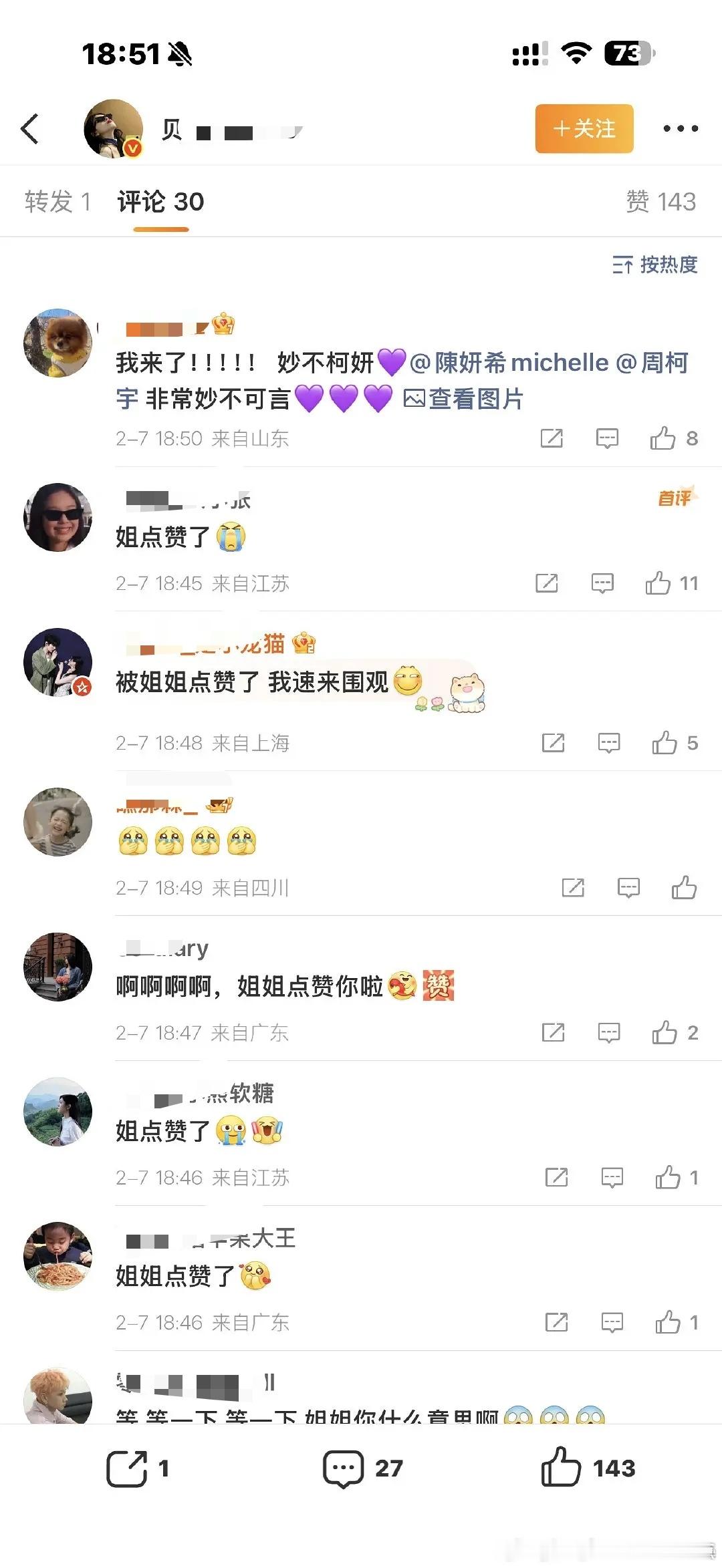 陈妍希又点赞了和周柯宇相关的rps硬是太糊了,换个有点流量的🌸,不得被麻辣十万