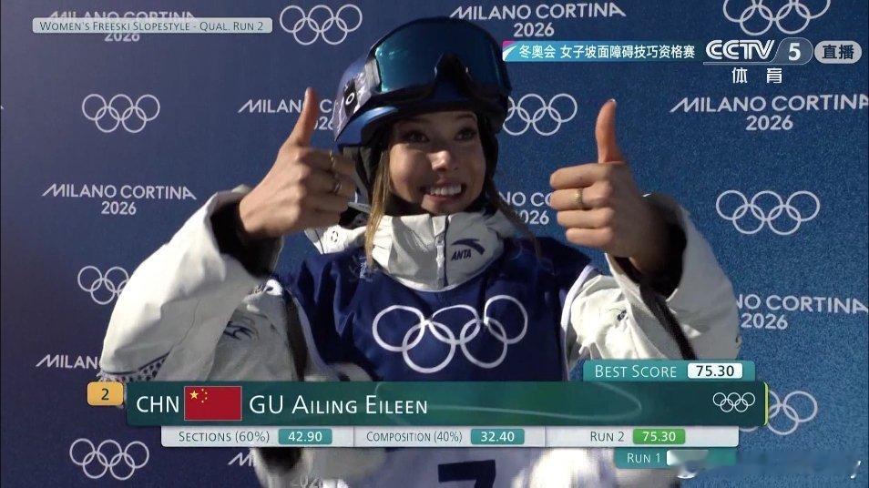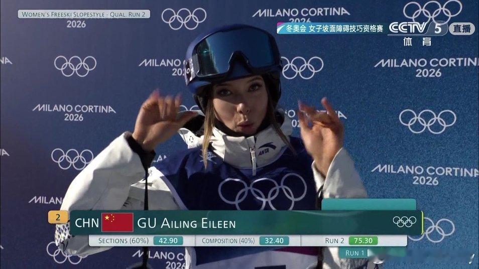 2026年米兰-科尔蒂纳冬奥会女子坡面障碍技巧资格赛,三名中国选手谷爱凌75.30分、韩林杉62.98分和刘梦婷以55.10分列前12名,携手晋级决赛。