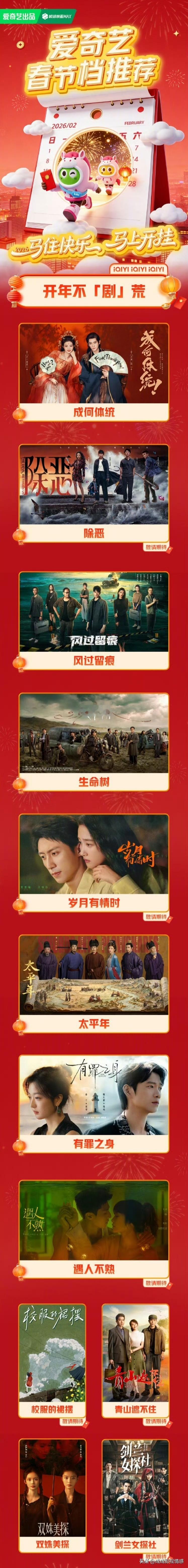 爱奇艺发布了2月春节大戏片单: