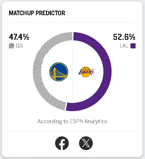 明日湖人主场迎战勇士,ESPN给出湖人胜率高达52.6%!肯纳德加盟湖人勇士vs