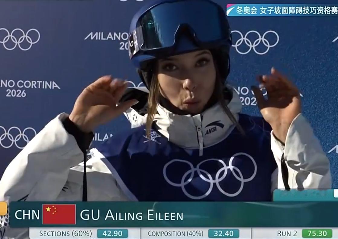 谷爱凌排第二进冬奥会决赛,还不是她的强项。 在刚刚结束的米兰冬奥会女子坡面障碍技巧资格赛上,谷爱凌第二次出发,拿到75.30分,位列资格赛第二进入决赛。 这个成绩已经非常好了,因为,这不是谷爱凌的强项。 在北京冬奥会上,谷爱凌是拿到了大跳台和U型场地的两个冠军,这个项目只是拿到了银牌。 又过去了4年,谷爱凌也22岁了,看她本届冬奥会还能取得什么成绩。 比上届更好的是,谷爱凌这次不是一个人在战斗,中国队还有刘梦婷、韩林杉闯进了决赛,将与谷爱凌并肩战斗。